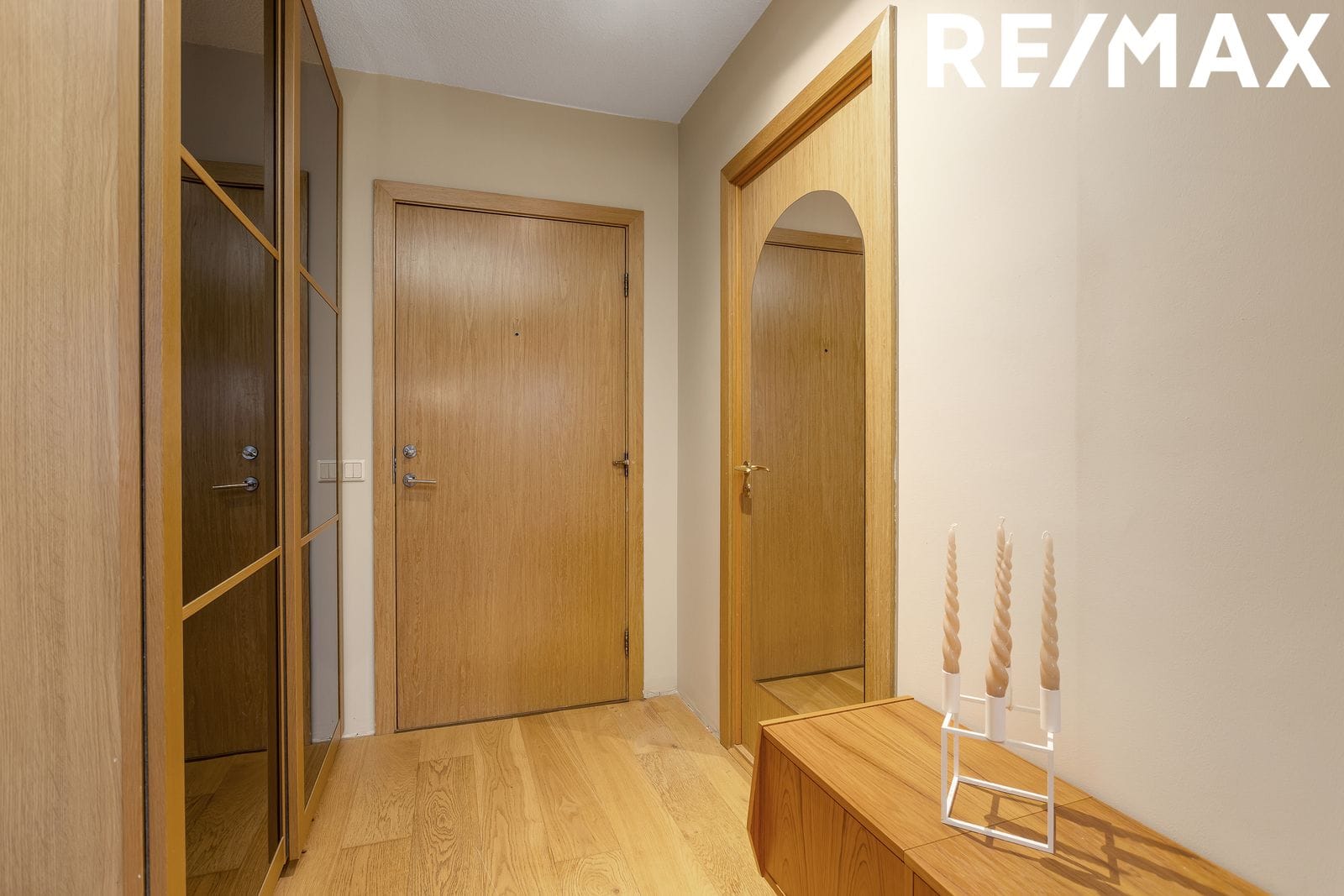 Komið er inn í forstofu með parketi á gólfi og stórum nýlegum forstofuskáp. Frá forstofu er gengið inn að stofu og eldhúsi ásamt því sem gengið er inn í geymslu innan íbúðar.