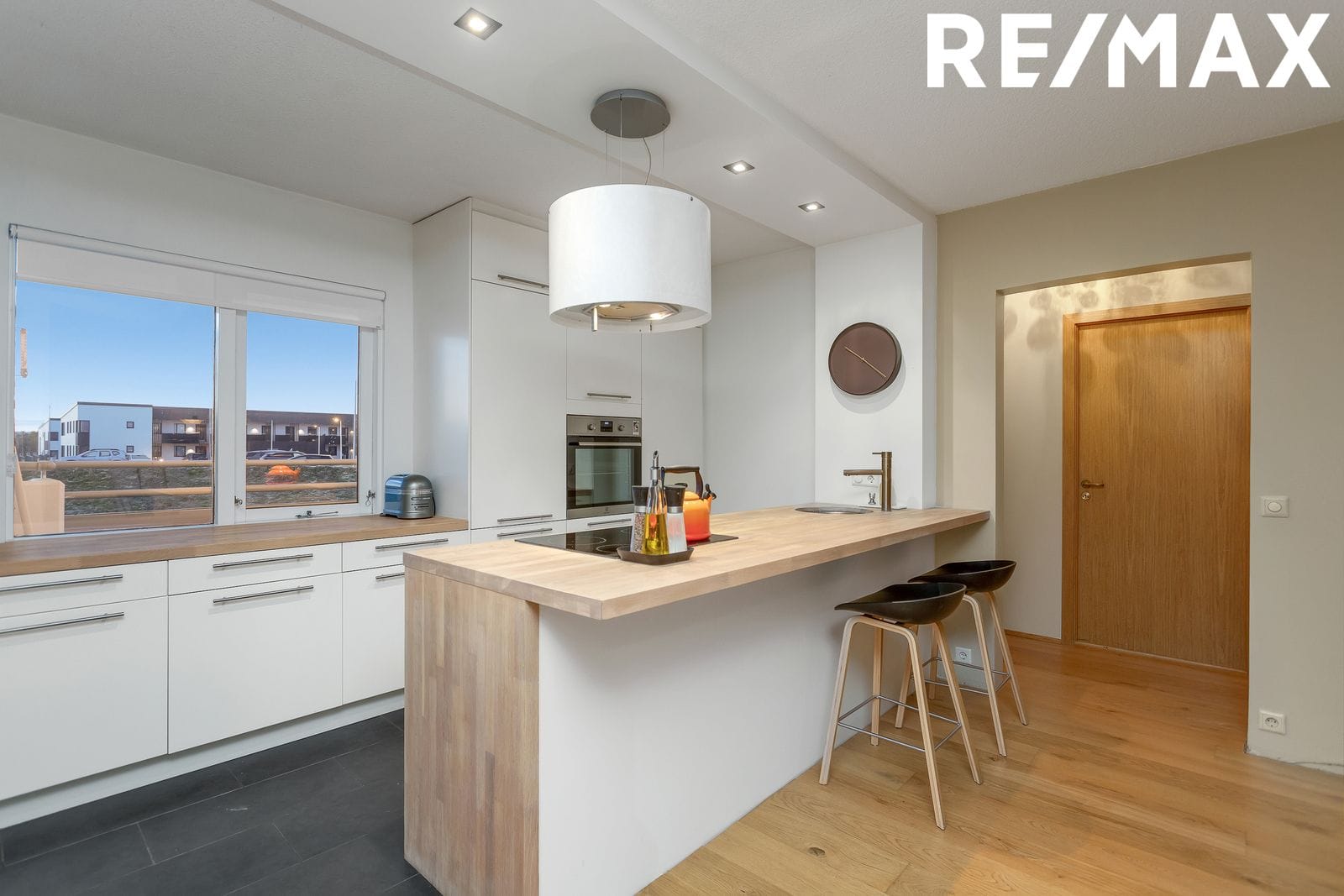 Eldhús var standsett 2011-2012 og er með fallegum nýlegum dökkum flísum á gólfi í eldhúsinu sjálfu og parketi á borðstofu/borðkrók. Falleg hvít eldhúsinnrétting með viðar bekkjum. Niðurfelldur vaskur og falleg blöndunartæki. Helluborð með fallegum háfi yfir og innfelldri lýsingu. Ný uppþvottavél (2025) og innbyggðum ísskáp og nýr bakaraofn (2025) er í vinnuhæð. Afar skemmtilegt plássmikið eldhús sem er þungamiðja íbúðar.