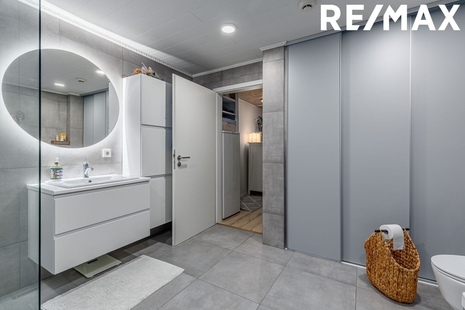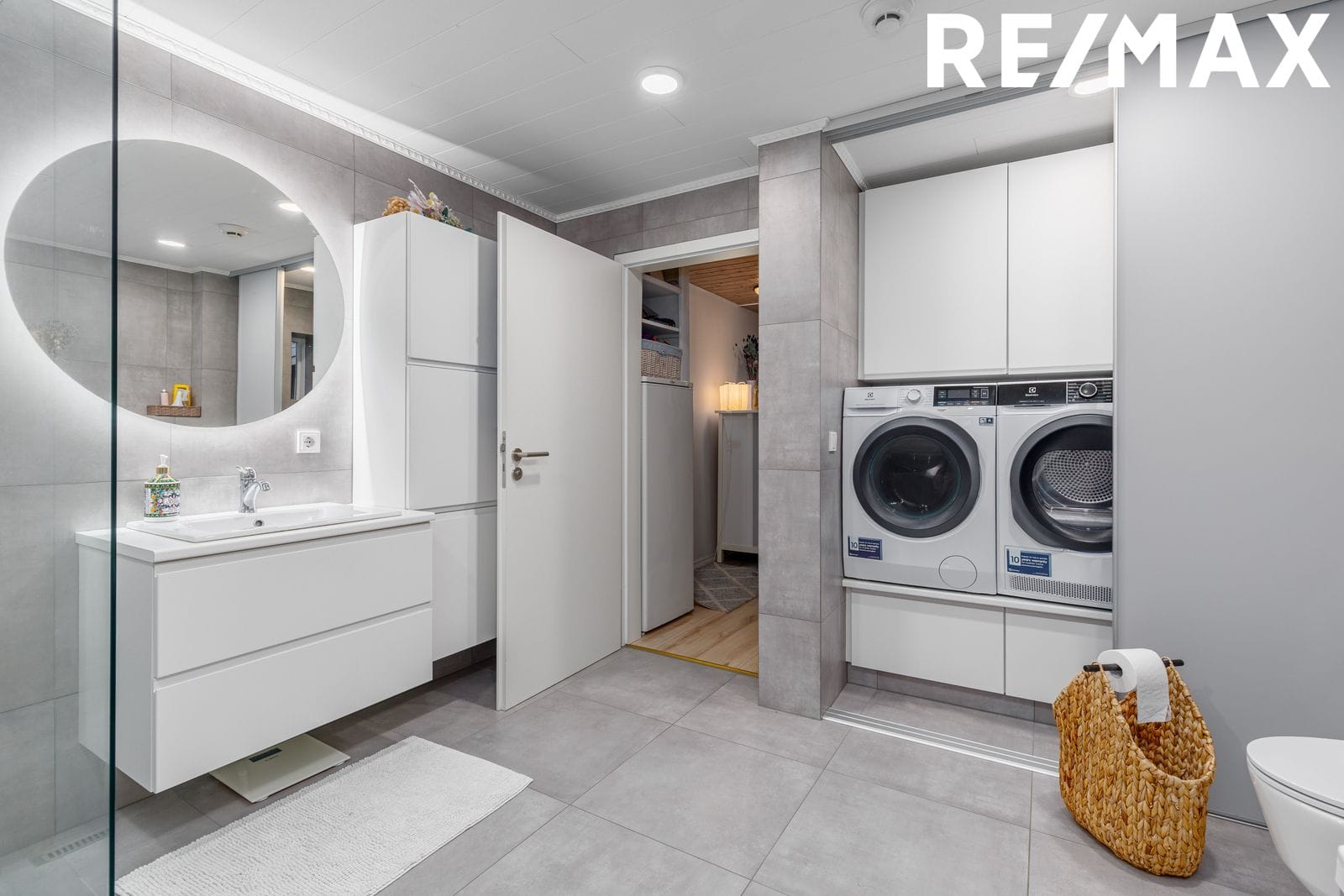 2022: Herbergi á neðri hæð breytt í baðherbergi og gestasalerni í þvottahúsi sameinað