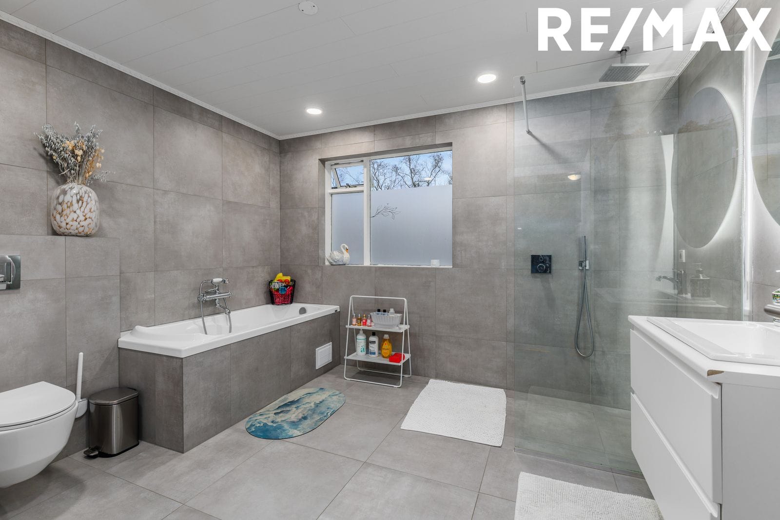 Baðherbergi: Flísalagt í hólf og gólf. Inngöngusturta með glerþili. Baðkar. Innrétting með stórri handlaug. Innrétting fyrir þvottavél og þurrkara og er rennihurð sem hægt er að loka af og hylja þvottasvæðið.