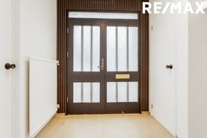 Forstofa: Með 60x60 flísum á gólfi og fatahengi. Á hægri hönd er forstofuherbergi og á vinstri hönd er gestasalerni.