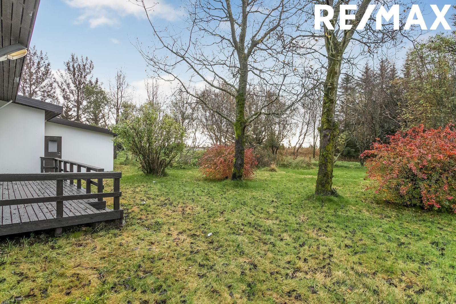 Bílskúr: Stór og snyrtilegur bílskúr með góðri lofthæð, gönguhurð og flekahurð með sjálfvirkum opnara. Bílskúrinn er einangraður og múraður. Upphitaður með afrennsli af húsinu. Góð afstúkuð geymsla/vinnuherbergi í bílskúrnum og gönguhurð út í garð.