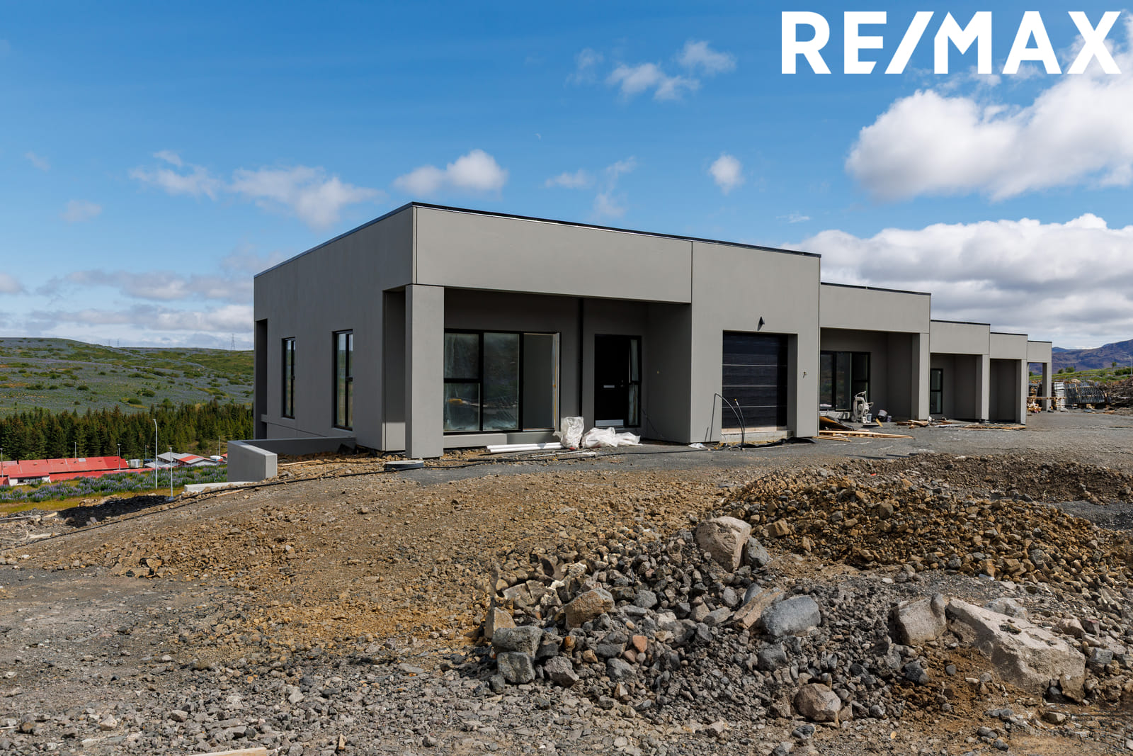 Húsið er forsteypt einingahús frá Steypustöðinni/ Loftorku ehf.Húsið stendur neðan við götu. Eignin er seld á byggingarstigi 3(stig 5 skv. eldri staðli). Fullgerð bygging að utan og tilbúin til innréttingar samkvæmt staðli ÍST 51. Við hönnun hússins er lögð áhersla á að njóta útsýnis og sólar, meðal annars með stórum svölum, þá er lögð áhersla á að sjónrænt myndi húsið heildarsvip og að samræming sé í efnis og litavali.