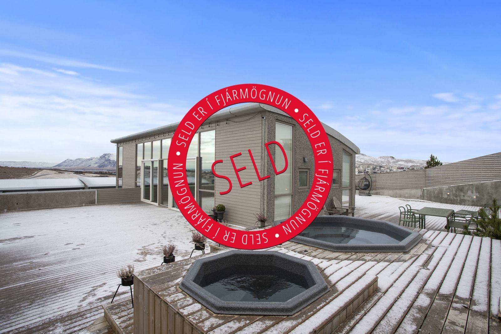 Útisvæði: Suðvestan megin við húsið er lóðin afgirt. Mjög stór ao falleg nýleg timburverönd með lýsingu. Bæði heitur- og kaldur pottur. Frábært útsýni.