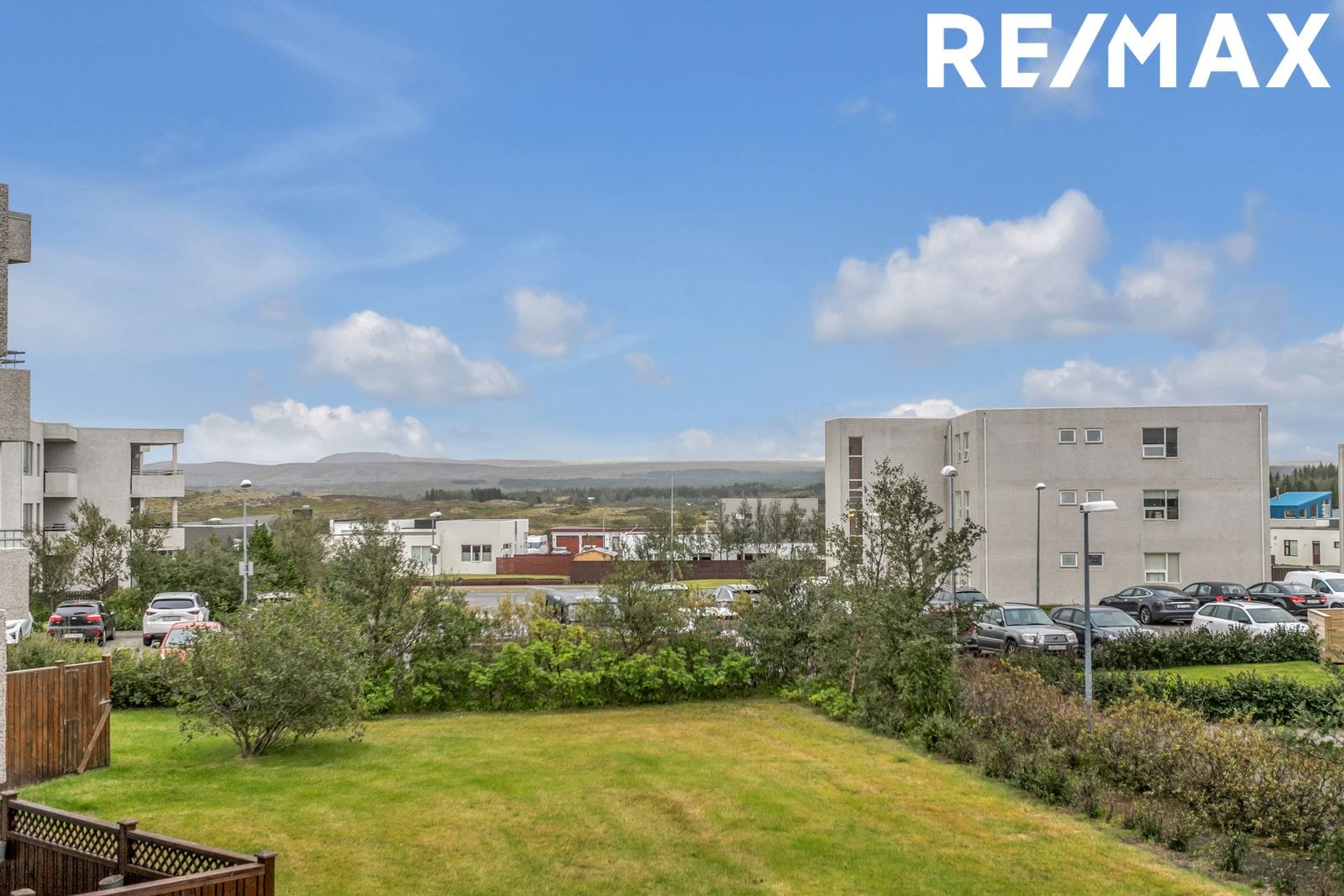 Nánari lýsing: Komið er inn í sameiginlegan teppalagðan stigagang. Sérinngangur er inn í íbúð frá sameiginlegum flísalögðum svölum. Forstofa rúmgóð flísalögð og með glugga. Þvottahús er á vinstri hönd frá forstofu. Flísalagt gólf og með góðu hilluplássi og skápum. Gluggi er í þvottahúsi. Svefnherbergi/Geymsla: Sem er í dag nýtt sem svefnherbergi með glugga. Eldhús er parketlagt með góðum innréttingum með neðri skúffum, og efri skápum að hluta. Innbyggður ísskápur, frystir og uppþvottavél. Ofn í vinnuhæð, helluborð og háfur. Granít borðplata og veggir flísalagðir að hluta á vegg og á milli efri og neðri skápa. Útgengi er út á einkar rúmgóðar svalir frá Eldhúsi. Útsýni er frá svölum að Rauðhólum. Stofa/borðstofa samliggjandi rými parketlagt og bjart með útsýni að nærumhverfi og að Rauðhólum. Svenherbergi á gangi rúmgott parketlagt og með skáp. Baðherbergi er á milli svefnherbergis og hjónaherbergis, flísalagt gólf og veggir, upphengt salerni, sturtuklefi og handklæðaofn. Baðinnrétting með neðri skúffum, granítborðplötu og handlaug á borði. Efri skápur og spegill með innbyggðri lýsingu. Hjónaherbergi er bjart og mjög rúmgott með tveimur fataskápum. Stór gluggi er í hjónaherbergi með útsýni að nærumhverfi.