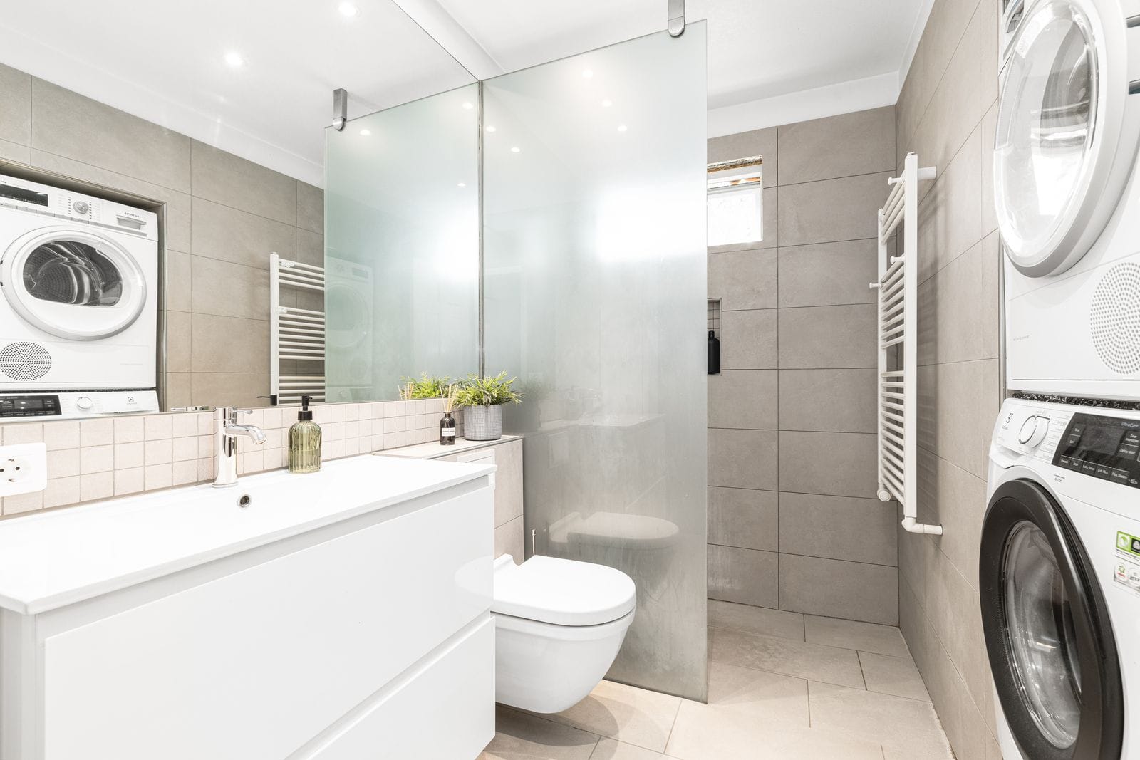 Neðri hæð: Tvö svefnherbergi með skápum, hitakompa og annað baðherbergi með sturtu, lítið og gott stæði fyrir þvottavél og þurrkara. Útgengt á bílaplan. Í annarri einingu á neðri hæð er búið innrétta aukaíbúð með sérinngangi, herbergi, eldhúsi og baðherbergi.