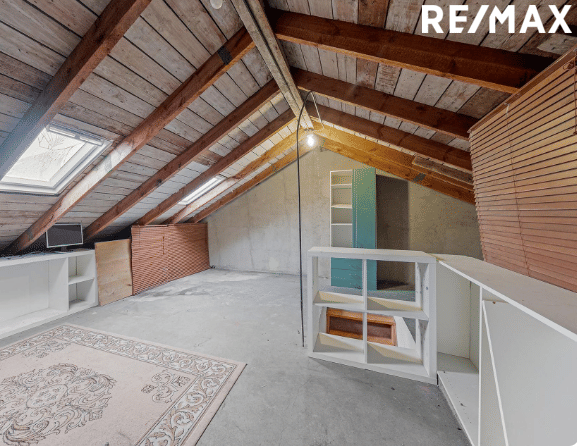 Efri hæðin. Steyptur stigi er uppá 2. hæð. Baðherbergi: Baðherbergið er flísalagt bæði á gólfi og veggjum, nýleg og sérsmíðuð innrétting með góðu skápaplássi, sturta og upphengt salerni. Hjónaherbergi: Parket á gólfi og með fataskáp. Barnaherbergi 1: Parket á gólfi, rúmgott. Barnaherbergi 2: Parket á gólfi, rúmgott. Ris: Rúmgott og nýtanlegt háreist ris er á efri hæð þar sem eru tveir opnanlegir þakgluggar, tengi er fyrir þvottavél og þurrkara og möguleiki á íbúðarými. Bílskúr: Er 28,20 fm, Rúmgóður með rafmagni og hita. Lóð: Plan er malbikað með merkt bílastæði.