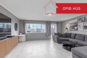 Nánari lýsing: Neðri hæð. Forstofa: Með flísar á gólfi. Þvottahús: Er inn af forstofu. Þar var áður gestasalerni. Hol: Er með flísum á gólfi og nýtanleg geymsla. Eldhús: Eldhúsið er mjög rúmgott með miklu skápaplássi. Stór borðkrókur með flísar á gólfi, góð og nýleg sérsmíðuð innrétting og nýleg tæki. Stofa/borðstofa: Stofa og borðstofa eru samliggjandi, flísar er á gólfi og nýleg hurð út á afgirtan pall. Nýlegar flísar og gólfhiti er á neðri hæð.
