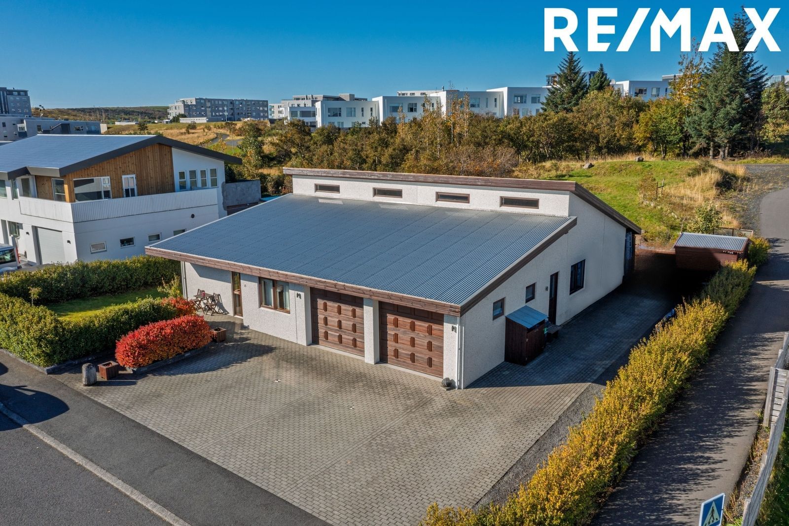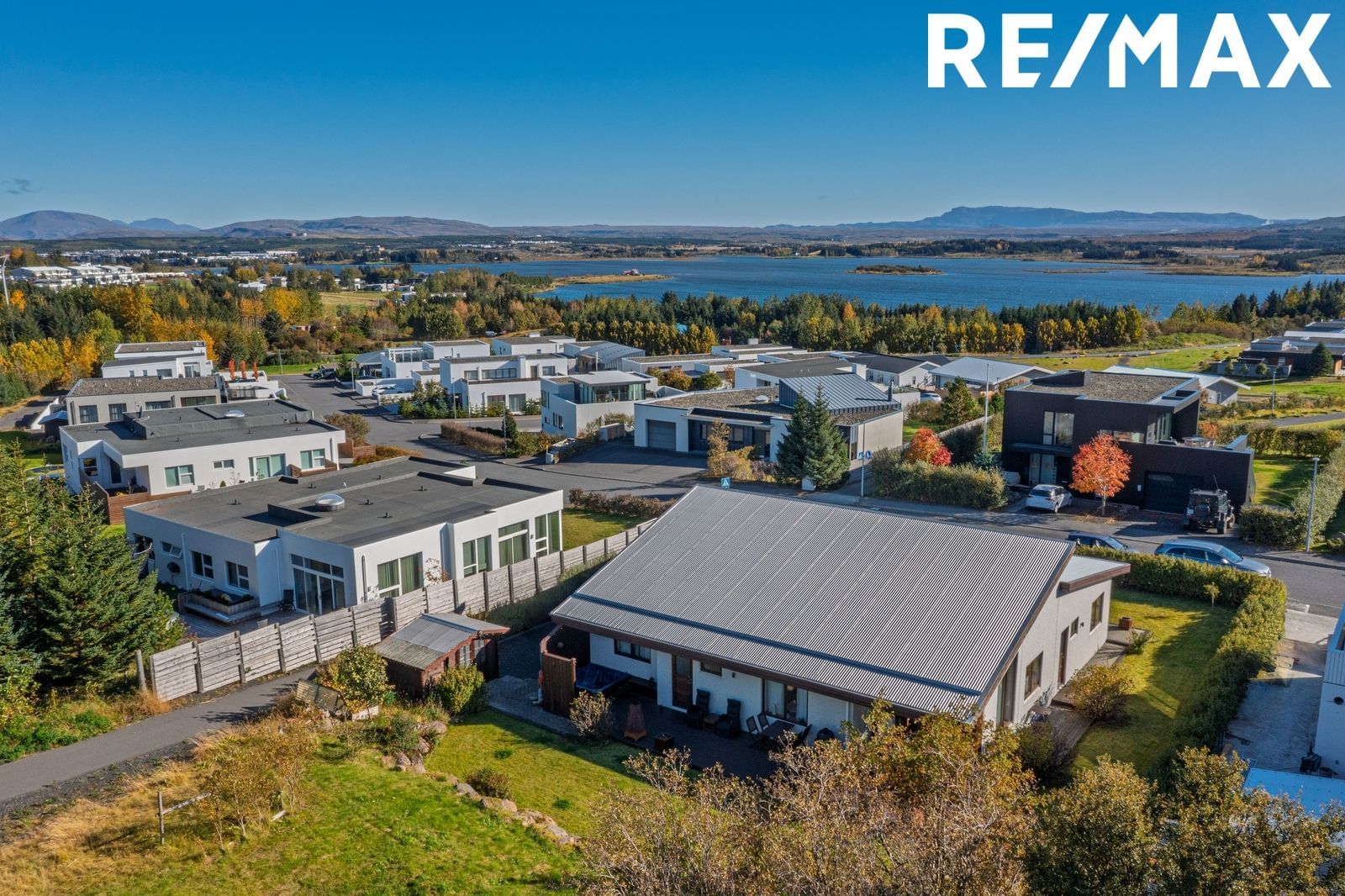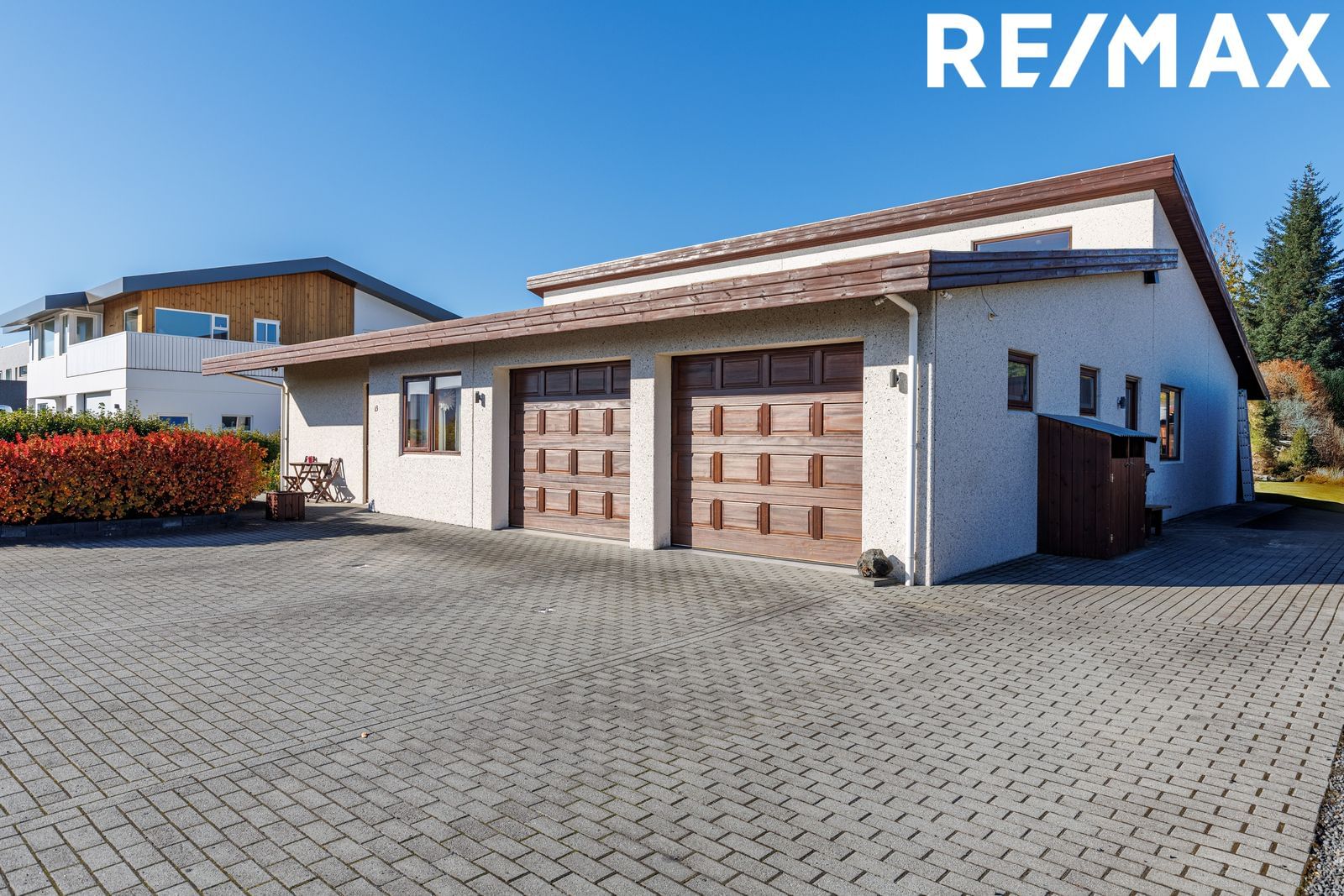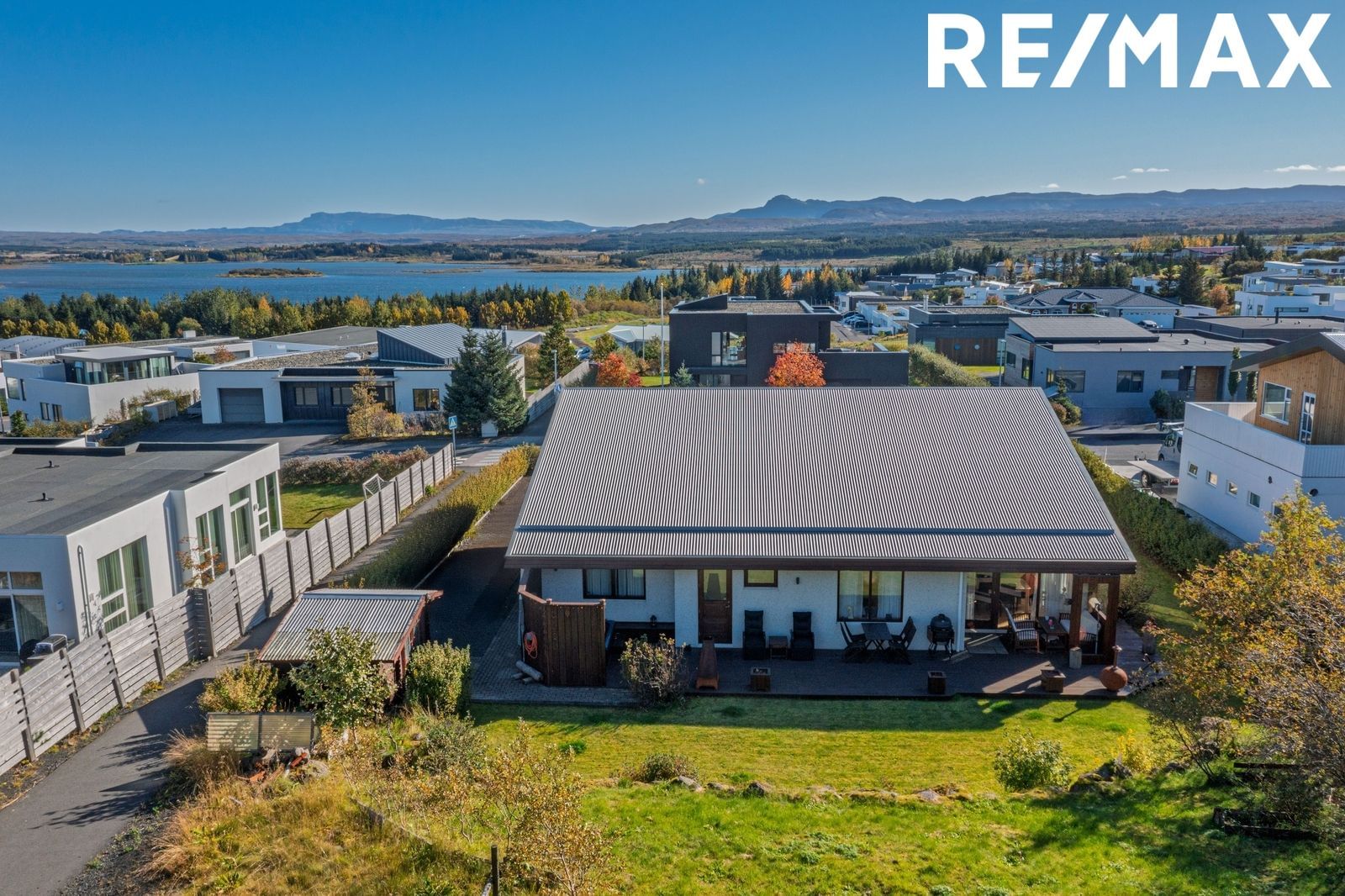 Þetta er afar vandað og vel hannað hús,  húsið er einganrað og endingargott úr steyptum einingum frá Loftorku,  allar innréttingar sérsmíðaðar, innihurðir yfir venjulegri hæð, panell í loftum með innfelldri halogen lýsingu í öllum rýmum, gólfefni eru viðarparket og flísar, gólfhiti er í öllum gólfum. Tvöfaldur bílskúr og stórt hellulagt bílaplan.