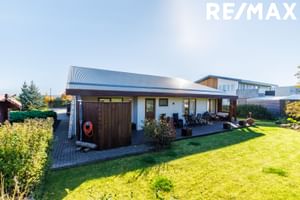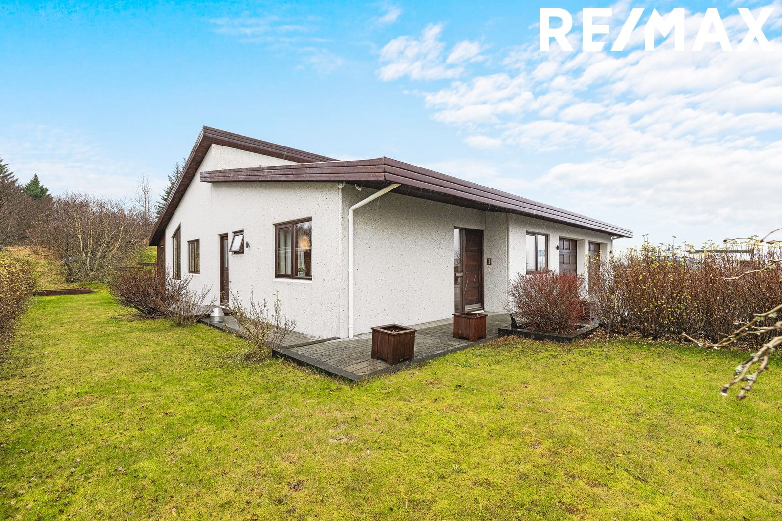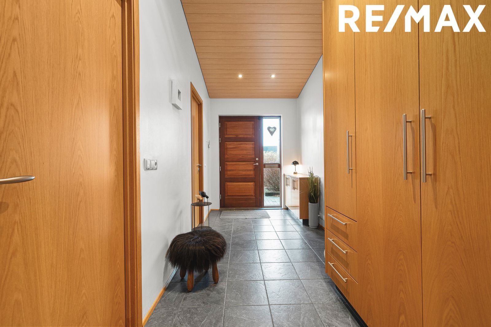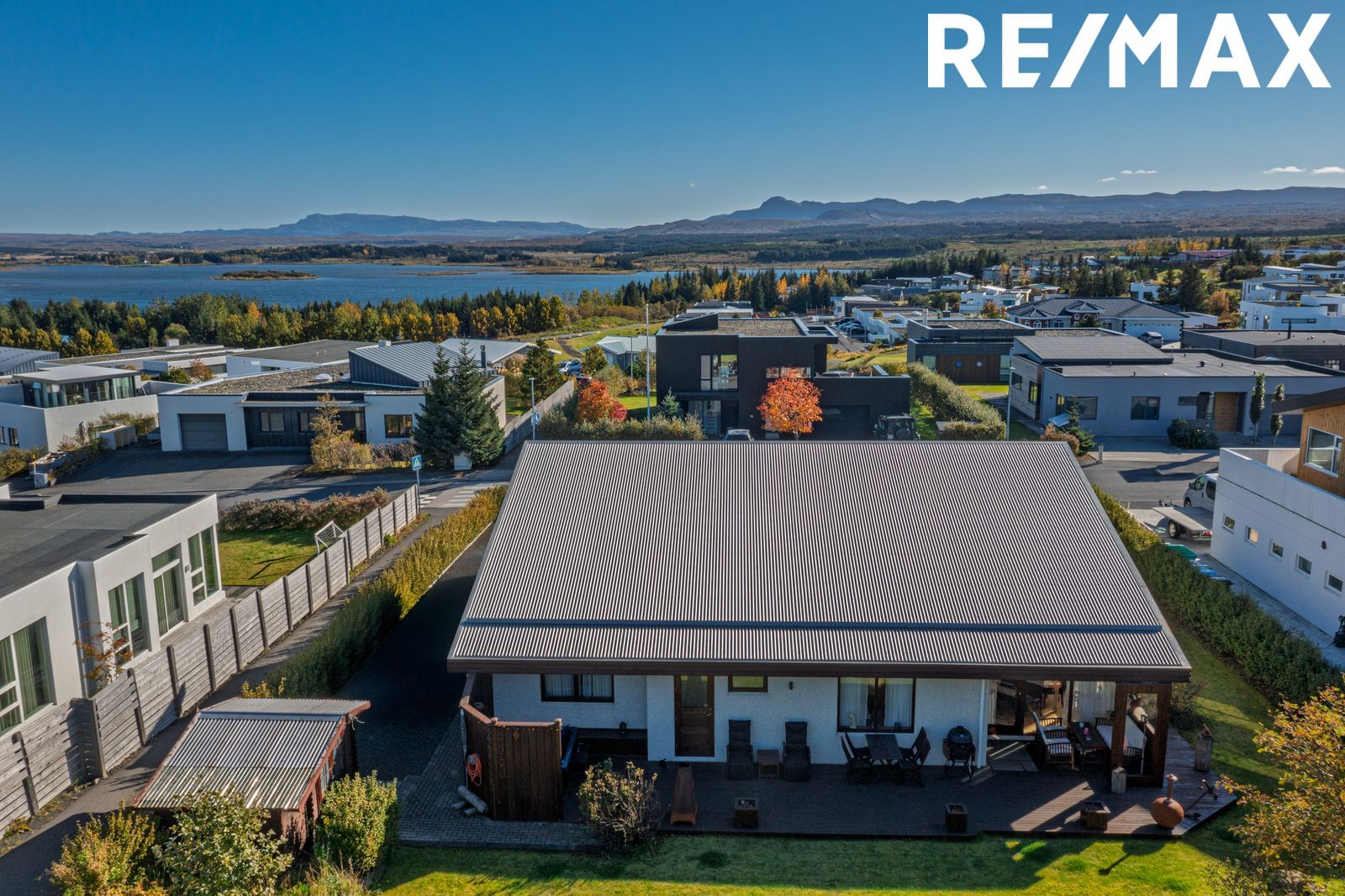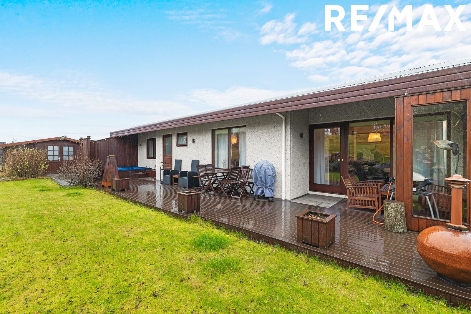 Þetta er afar vandað og vel hannað hús,  húsið er einganrað og endingargott úr steyptum einingum frá Loftorku,  allar innréttingar sérsmíðaðar, innihurðir yfir venjulegri hæð, panell í loftum með innfelldri halogen lýsingu í öllum rýmum, gólfefni eru viðarparket og flísar, gólfhiti er í öllum gólfum. Tvöfaldur bílskúr og stórt hellulagt bílaplan.
