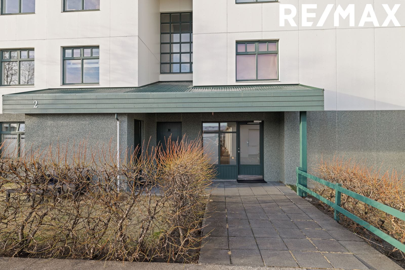 er inn af snyrtilegri sameign. Innan íbúðar er parketlagt gólf og hvítur fataskápur með spegli fyrir yfirhafnir.