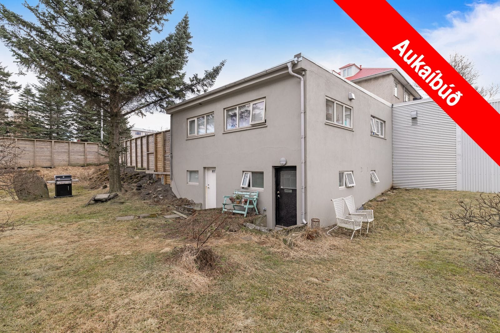 Bílskúr – Tvær sjálfstæðar leigueiningarBílskúrinn stendur sér frá húsinu og var endurnýjaður frá A–Ö árið 2020 og innréttaður sem tvær íbúðir með sérinngangi.