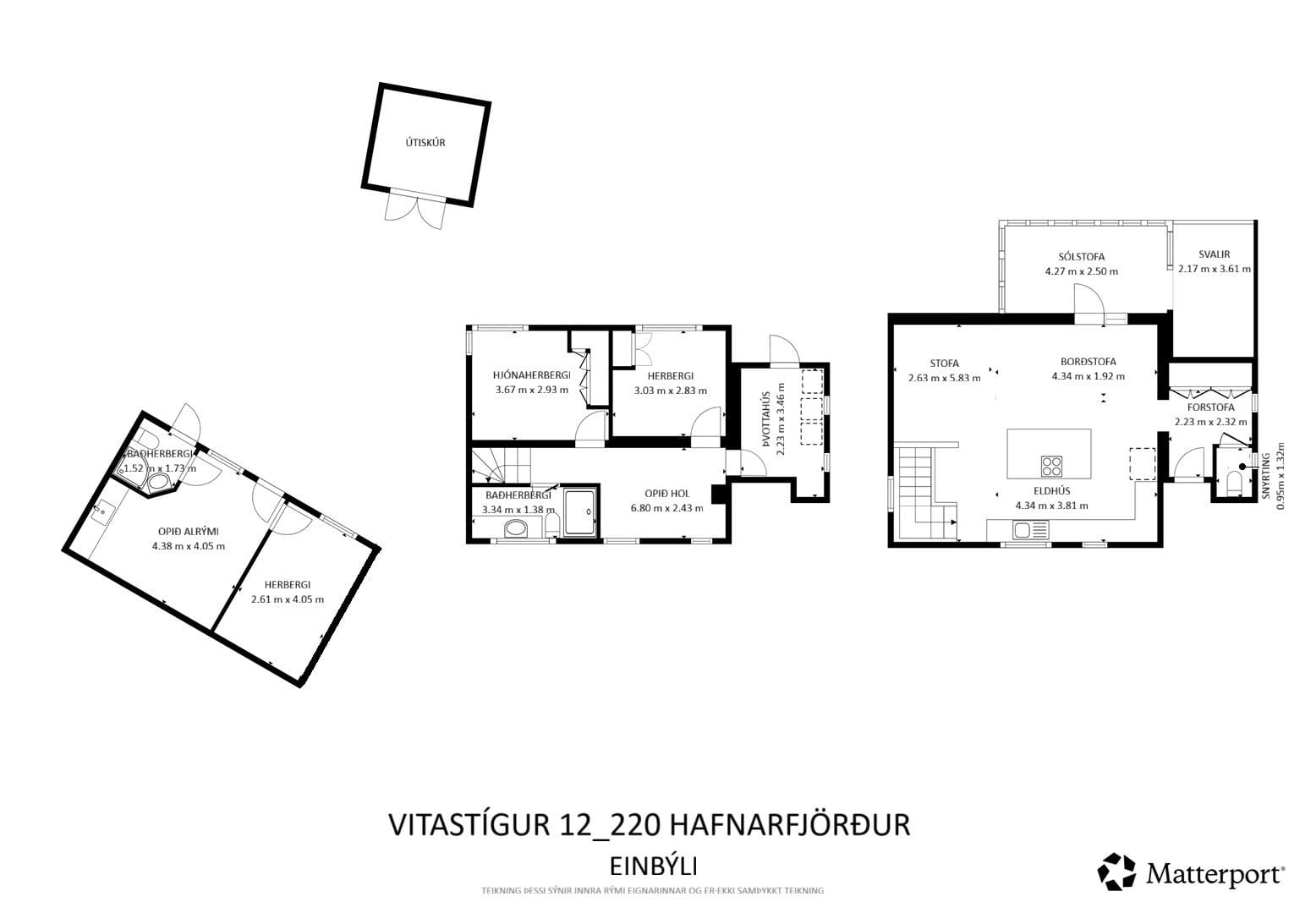 Einbýlishúsið er með tveimur svefnherbergjum, stofu, eldhúsi, baðherbergi með þvottaaðstöðu, svölum sem gefa gott útsýni. Í bakgarðinum er pallur og útivistaraðstaða með heitum potti, einangraður geymsluskúr. Auk þess er bílskúr með sérinngangi sem útbúinn hefur verið sem aukaíbúð.