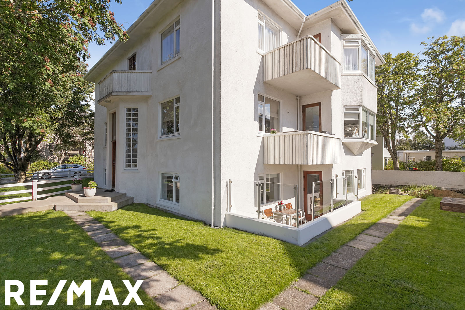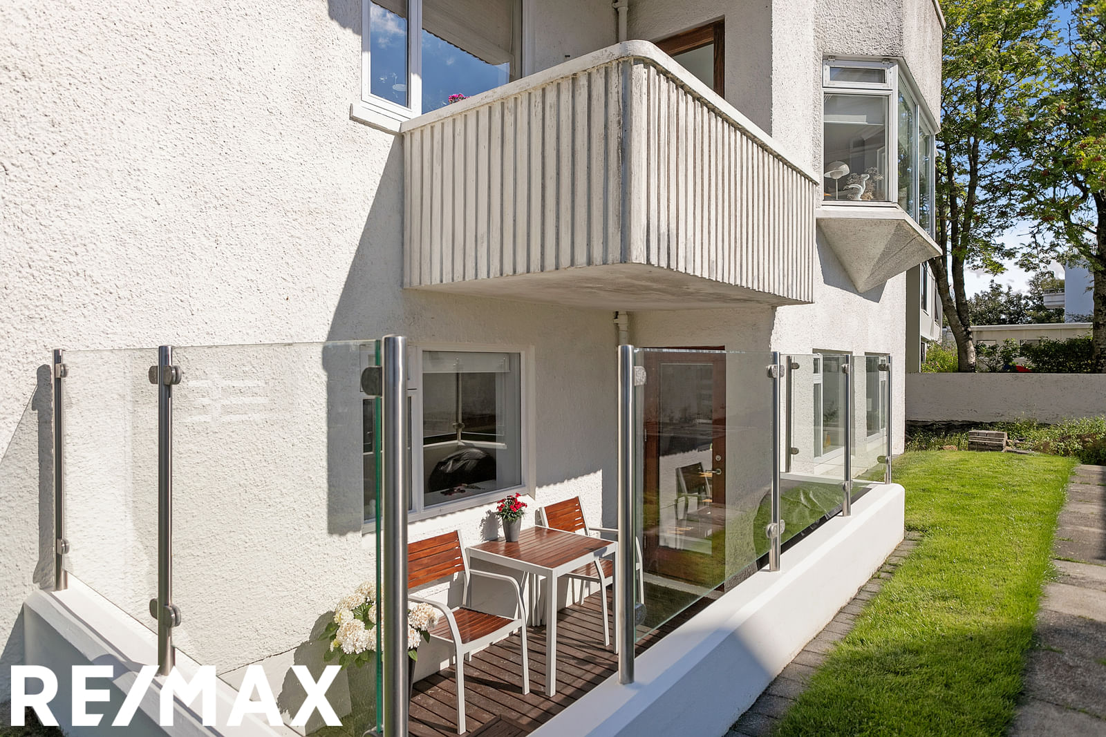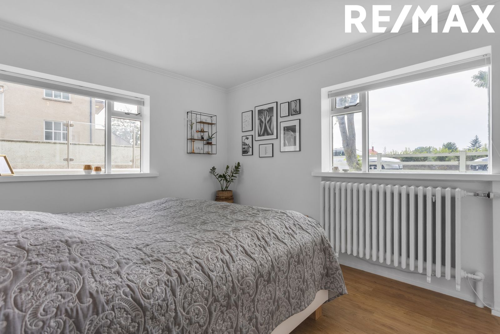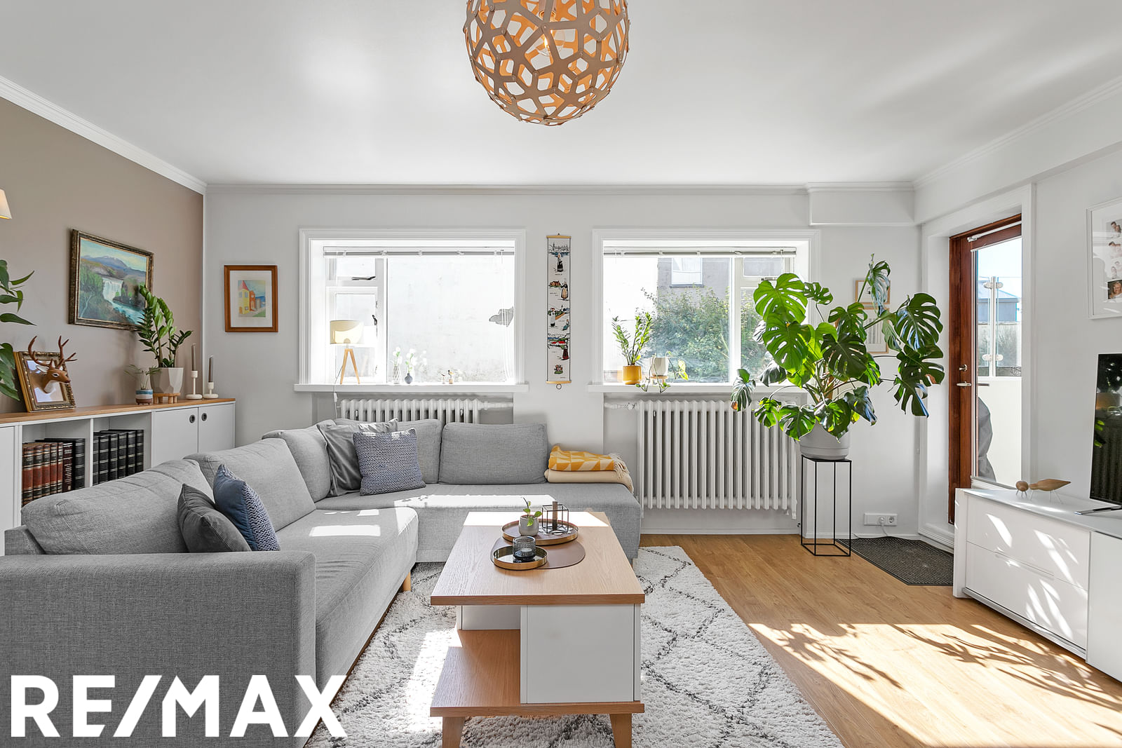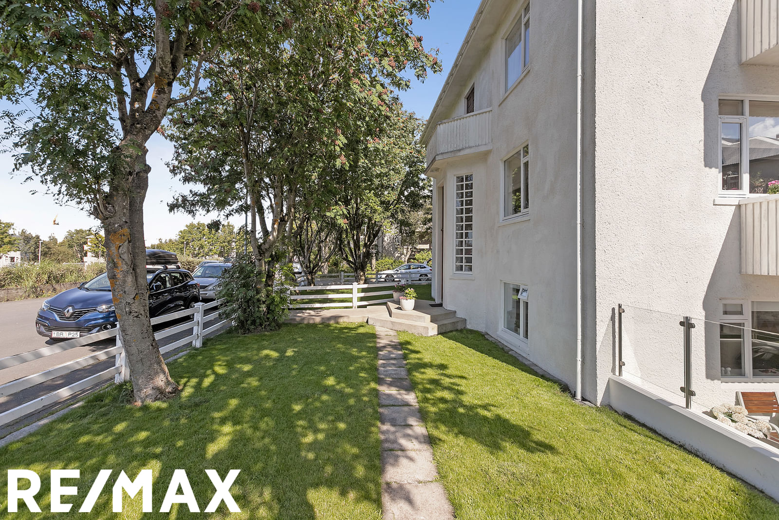 RE/MAX og Sigríður Guðnadóttir kynna: Einstaklega björt og falleg 4ra herbergja íbúð (skráð kjallari en er lítið niðurgrafin) í gullfallegu þriggja íbúða steinhúsi. Húsinu hefur verið haldið vel við og íbúðin mikið uppgerð. Þak endunýja fyrir um 9 árum, gluggar og gler endurnýjarði á austuhlið 2023 o.fl. Nánari lýsing: Inngangur: Aðalinngangur um anddyri með íbúð á fyrstu hæð (Helgarteigs megin) En einnig er sér inngangur norðamegin í íbúð um þvottahús / kyndiklefa (Silfurteigsmegin) Nánari lýsing: Gengið er inn í forstofu /hol með parket á gólfi og sérsmíðuðum fataskáp (2020) Eldhús með fallegri hvítri eldhúsinnréttingu (sérsmíðuð) með eikar borðplötu, spanhelluborði, hvítar flísar á milli skápa. Allt endurnýja 2014 og 2015, og auk þess var búið til op milli stofu og eldhúss. Rúmgott hjónaherbergi með glugga á tvo vegu, nýlegir sérsmíðaðir fataskápar og parket á gólfi. Geymsla inn af svefnherbergi með hillum, hægt að fjarlægja og gera að einu stóru svefnherbergi. Tvö góð barnaherbergi með fataskáp, parket á öðru þeirra og flotað gólf í hinu (á teikningu er annað herbergi þvottahús). . Baðherbergi er flísalagt, og var endurnýjað 2014, með fallegri innréttingu, sturtubaðkari, upphengdu salerni og handklæðaofn. Stofa er rúmgóð og björt með útgengi út á verönd og garð, nýleg svalahurð með gleri og eru því gluggar á tvo vegu. Pallur er niðurgrafinn að hluta til, steypur með affallslögnum, gólf með pallaefni og skjólveggir úr gleri og var þetta gert 2017. Þvottahús/ kyndiklefi er innan íbúðar og er útgengi út í garð, góð þurrkaðastaða.
