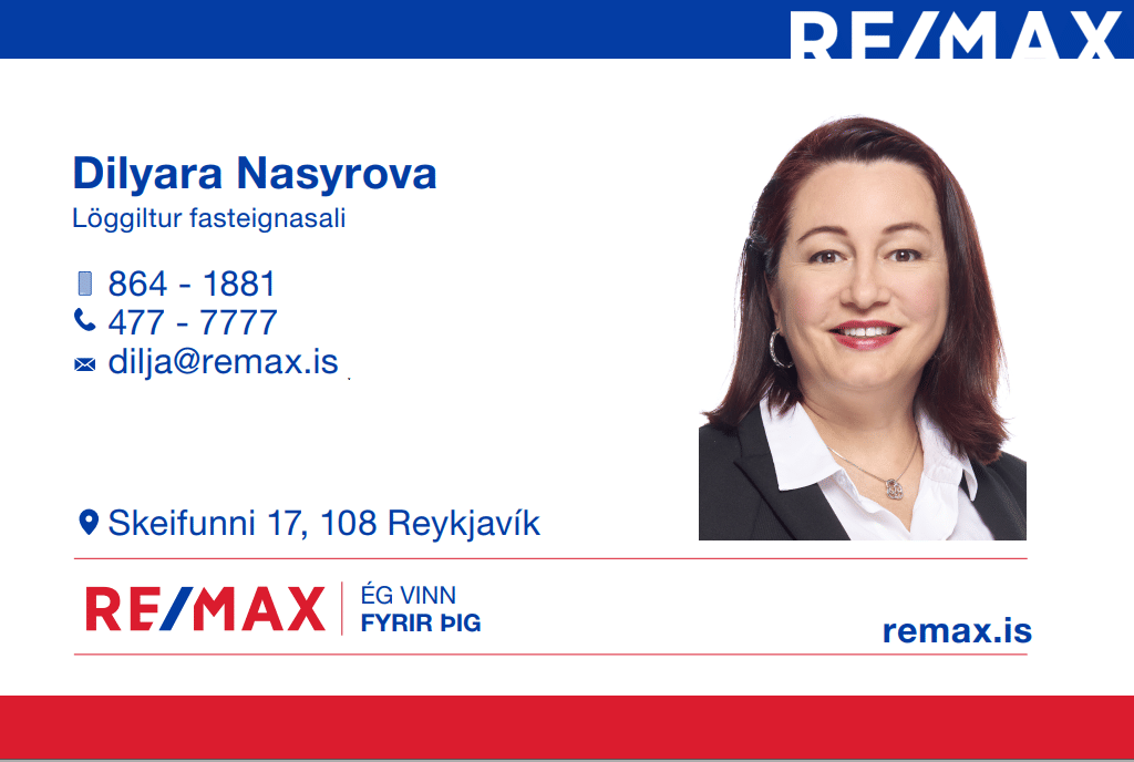 Dilyara löggiltur fasteignasali í síma 864-1881 eða á netfangið dilja@remax.is
