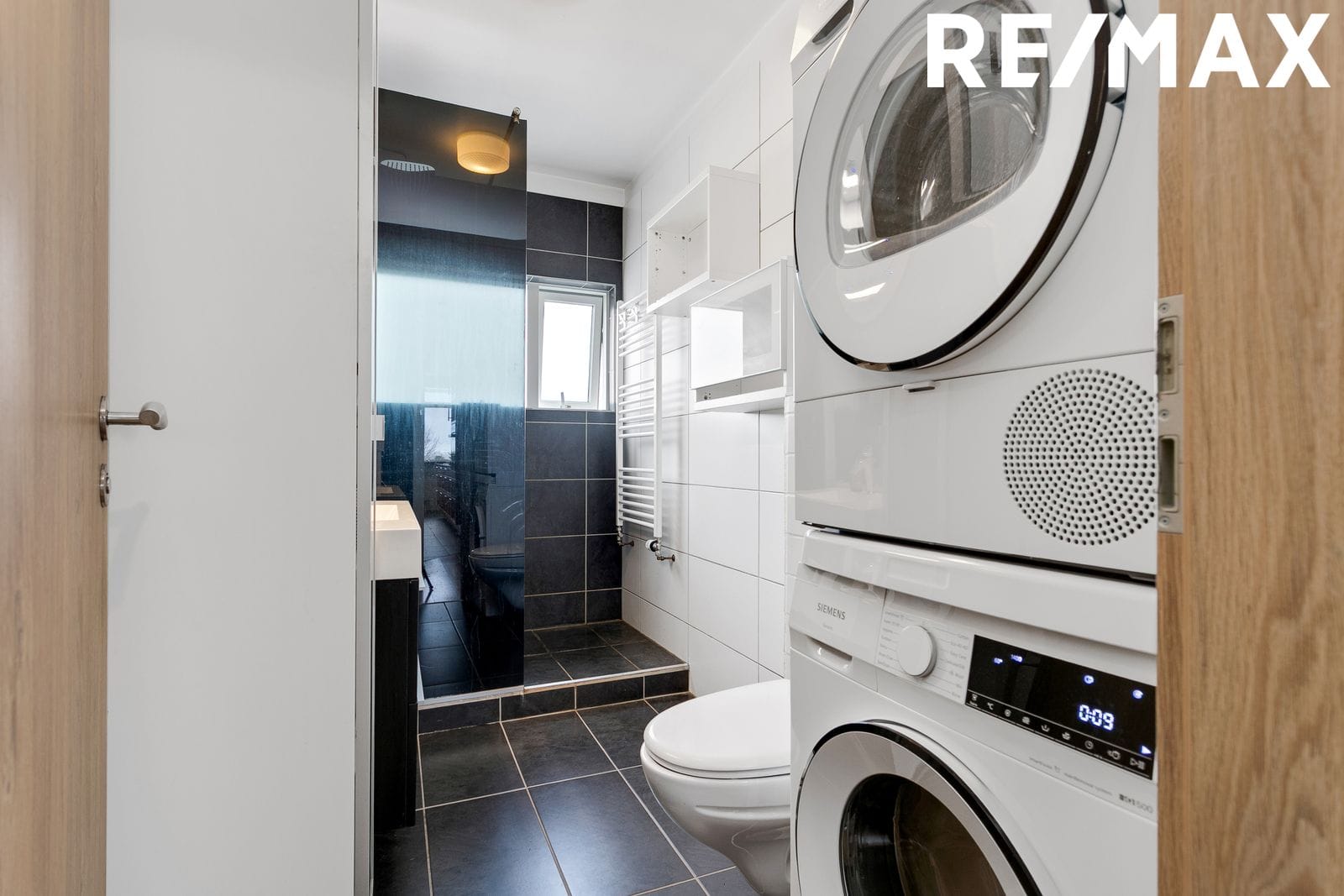 Baðherbergi Með góðri sturtuaðstöðu, innréttingu og glugga. Flísalagt gólf og veggir að hluta. Gert er ráð fyrir þvottavél inn á baðherbergi.