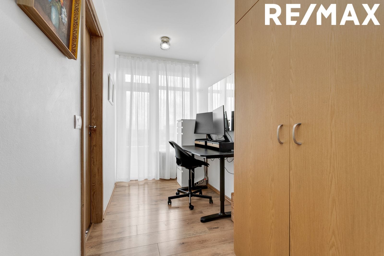 Svefnherbergisgangur Með vinnuaðstöðu og rúmgóðum fataskápum. Útgengi er út á svalir af gangi.