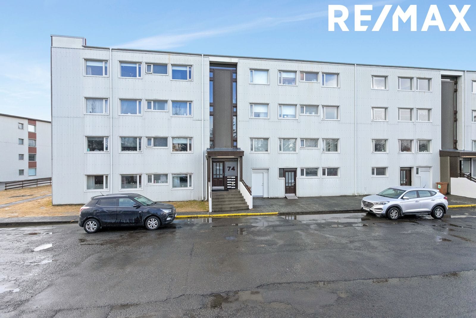 Húsið skiptist í tvo stigaganga, nr. 74–76, með tíu íbúðum í hvorum hluta.Nánari lýsingForstofa / anddyri Rúmgóð forstofa með flísum á gólfi og fataskáp.
