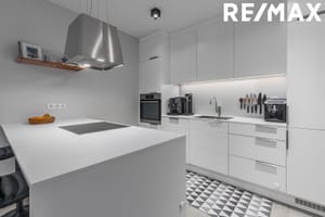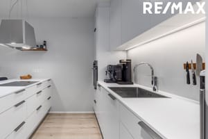 - Eldhúsið er í sameiginlegu rými með stofu/borðstofu. Parket á gólfi og allar innréttingar eru sprautulakkaðar hvítar með silkimattri áferð. Allar skúffur eru með mjúklokun. Tengi fyrir uppþvottavél.