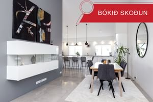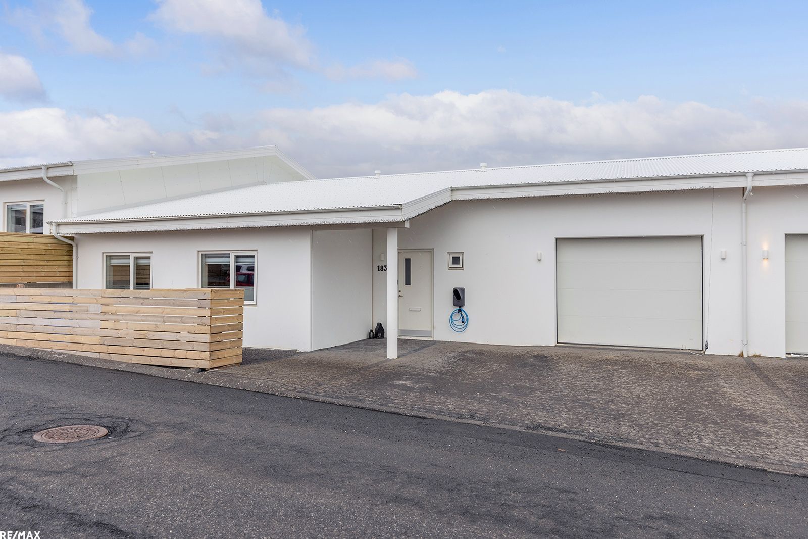 Bjarni Blöndal löggiltur fasteignasali (bjarni@remax.is/s:662-6163) kynnir í einkasölu virkilega fallegt raðhús á einni hæð með innbyggðum bílskúr við Laxatungu 183, 270 Mosfellsbæ.  Mikil lofthæð, gott skipulag og gólfhiti í öllu húsinu. Sérpantaðar, ítalskar hágæðaflísar frá Álfaborg eru á öllu húsinu og hvítar innihurðir frá Birgison. Flottur sólpallur til suðurs með heitum potti. Samkvæmt HMS er raðhúsið 166,5m2 auk 36,9m2 bílskúrs, samtals 203,4m2. Húsið skiptist í forstofu, stofu, borðstofu, eldhús, þrjú svefnherbergi, baðherbergi, gestabaðherbergi, þvottahús, bílskúr og geymslu. Fasteignamat 2026 verður 132.000.000kr.