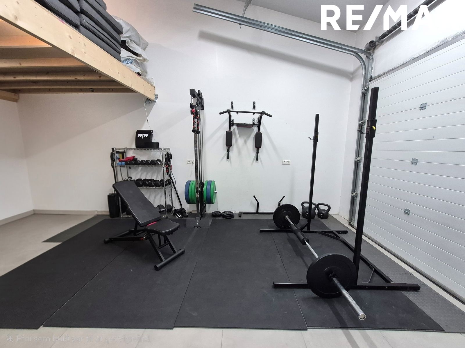 Bílskúr er flísalagður með sömu flísum og húsið, geymsluloft, rafdrifinn bílskúrshurðaropnari. Geymsla með hillum er inn af bílskúr, flísar á gólfi. Gólfhitakerfi með nýrri hitastýringu fyrir hvert rými fyrir sig. Snjóbræðsla í plani.