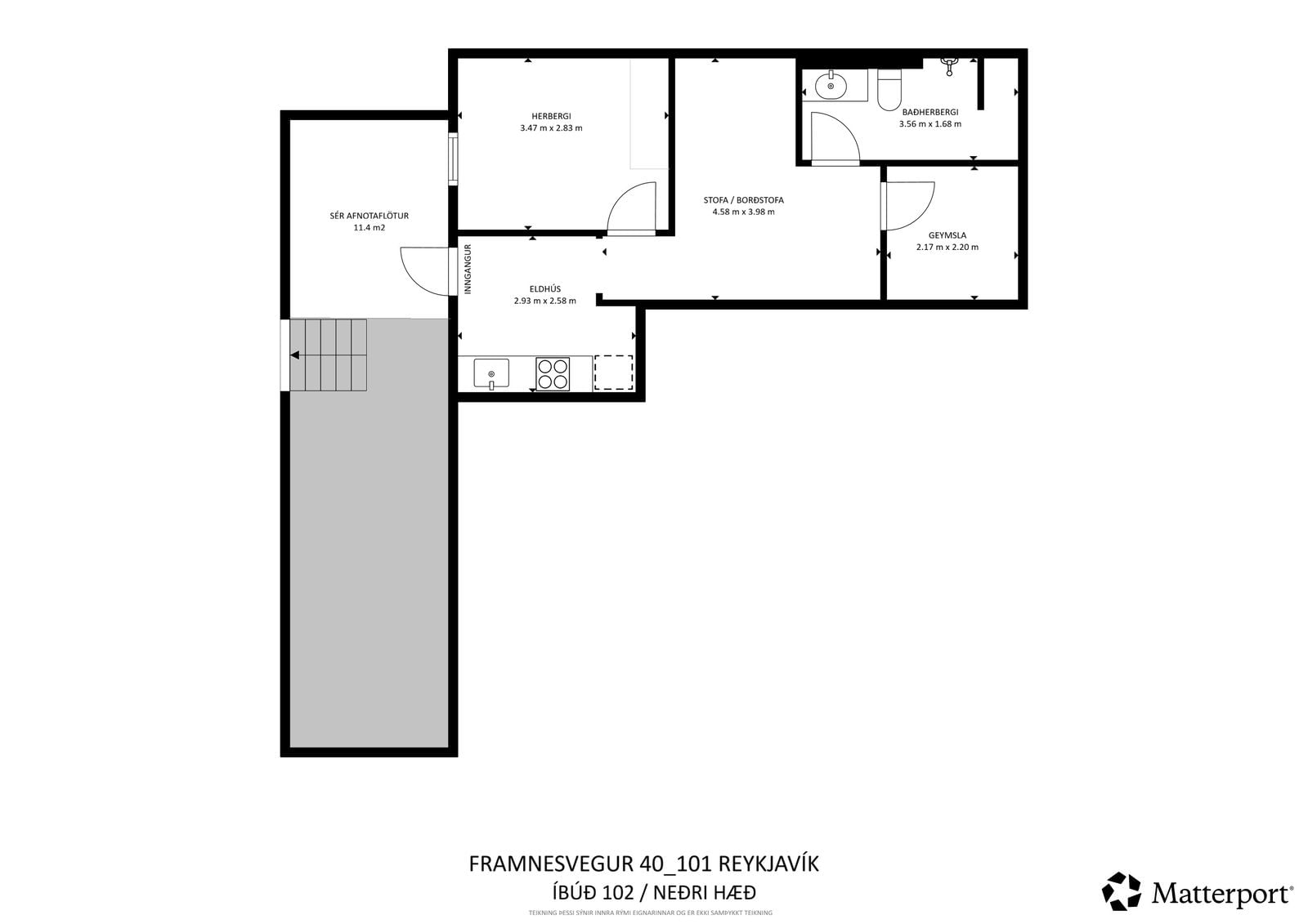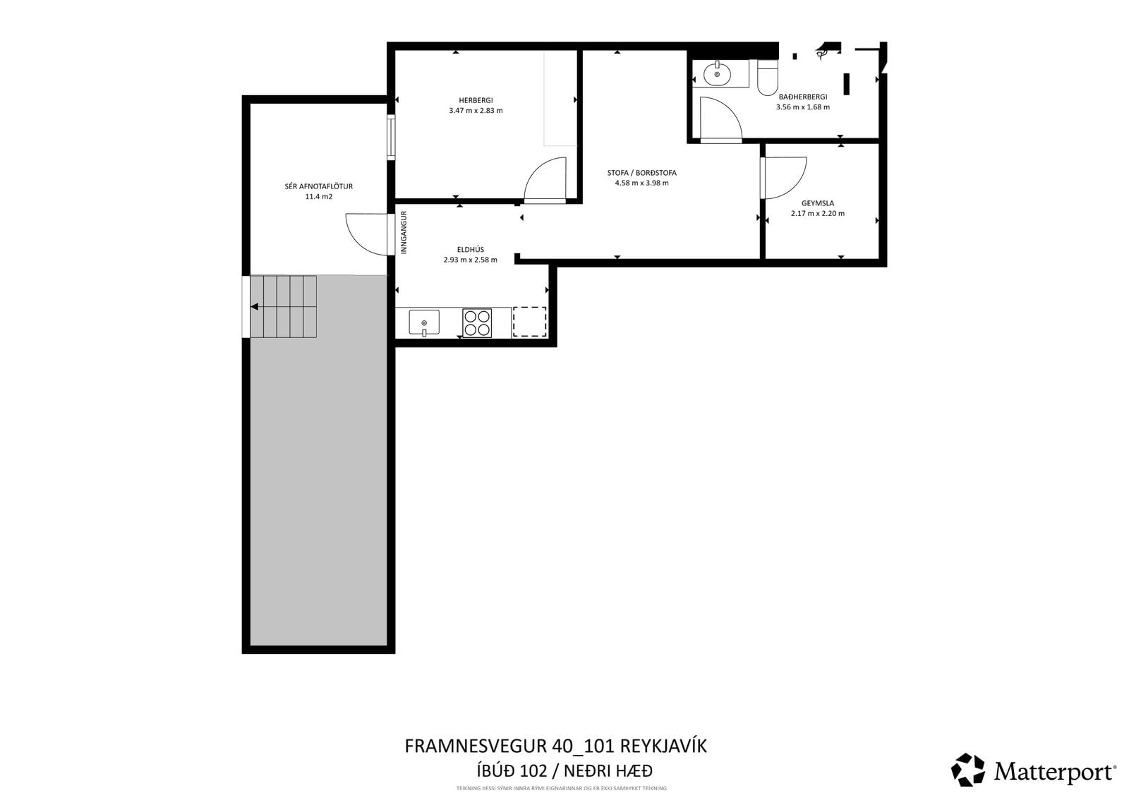 Um er að ræða 124,2 fm íbúð (íbúð 102) við Framnesveg 40 í 101 Reykjavík sem er búið að skipta upp í tvær eignir + þess er búið að útbúa studíó íbúð í bílskúrnum sem fylgir með íbúðinni. Miklir tekjumöguleikar til útleigu í þremur íbúðum.
