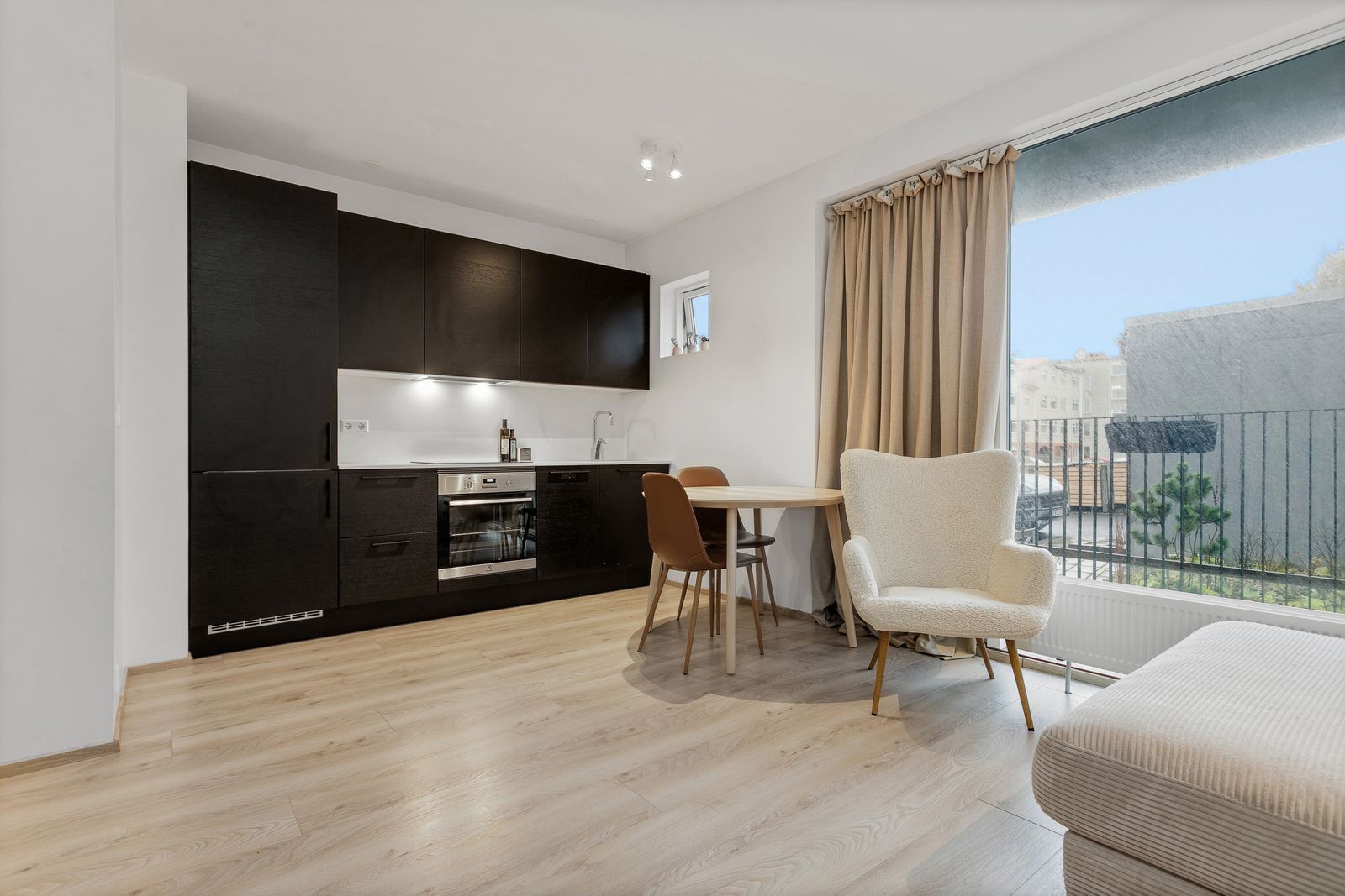 Á 1. hæð er 45,5 fm. íbúð með sameiginlegum inngangi. Íbúðin er með einu svefnherbergi, stofu og eldhúsi í opnu alrými með parket á gólfum og útgengi út á svalir.