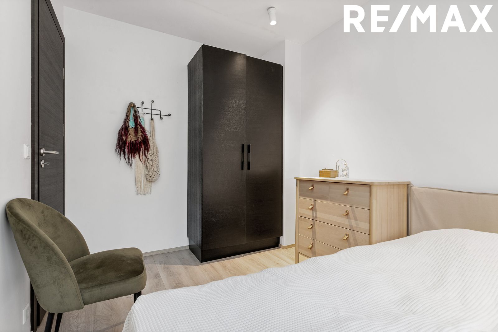 Svefnherbergið er mjög rúmgott með parket á gólfum og fataskáp.