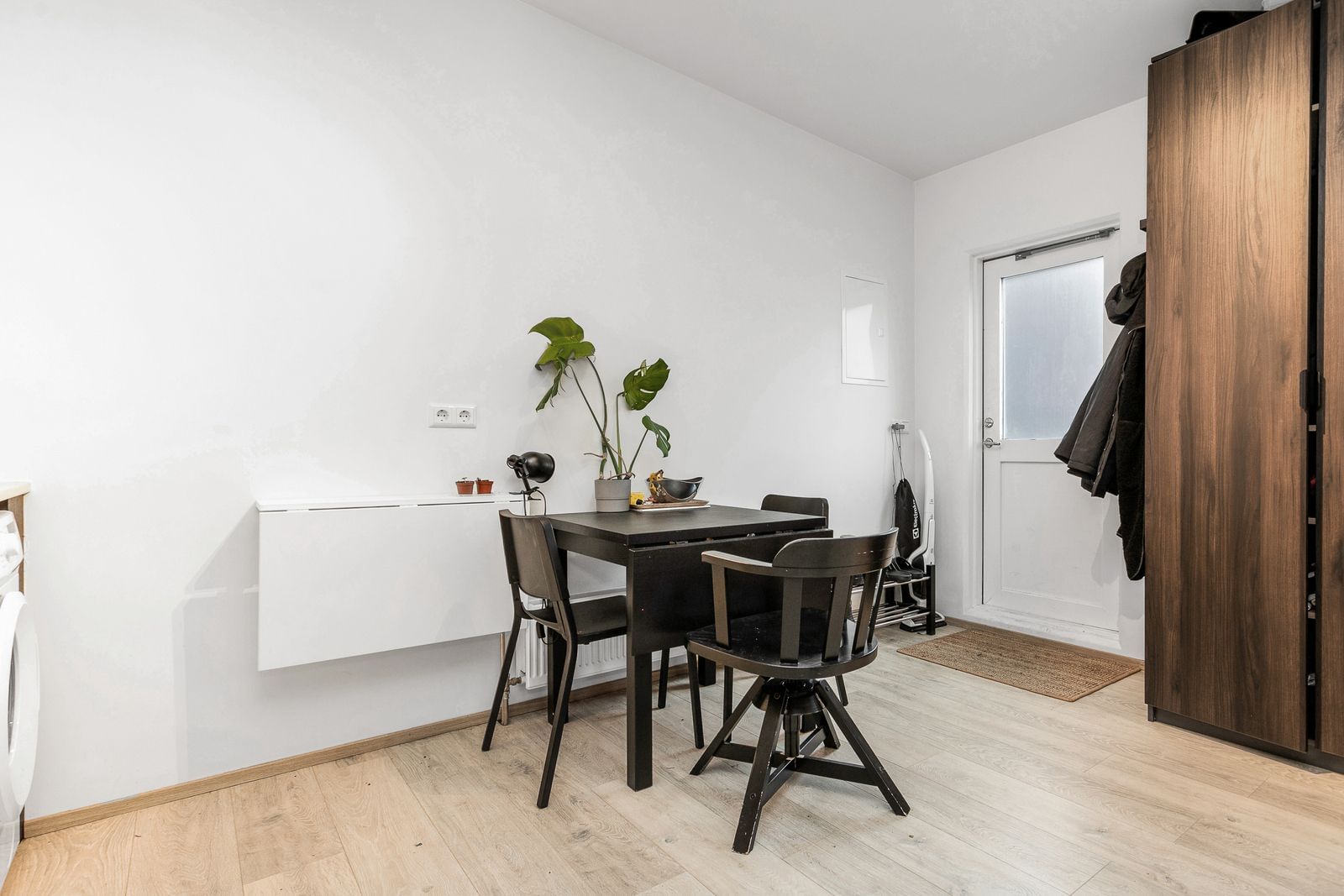 Í bakhúsi á lóð er 29 fm innréttuð studió íbúð með sérinngangi sem er skráð sem vinnustofa. Góð eldhúsinnrétting með þvottavél. Flísalagt bað með sturtu og upphengt salerni. Í sama húsi er sameiginleg vagnageymsla fyrir húsið.