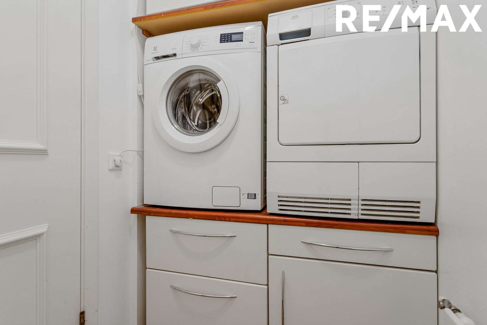 Þvottahús: innaf eldhúsi er þvottahús með góðu skápaplássi. Innrétting fyrir vélar í vinnuhæð.