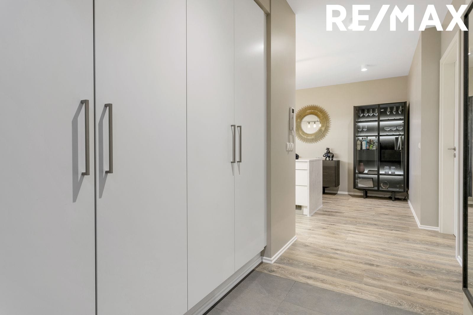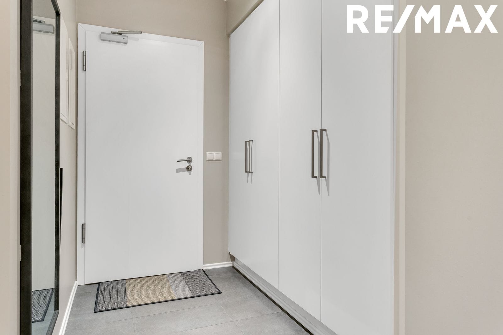 Forstofa er með góðum fataskápum, flísar á gólfum.
