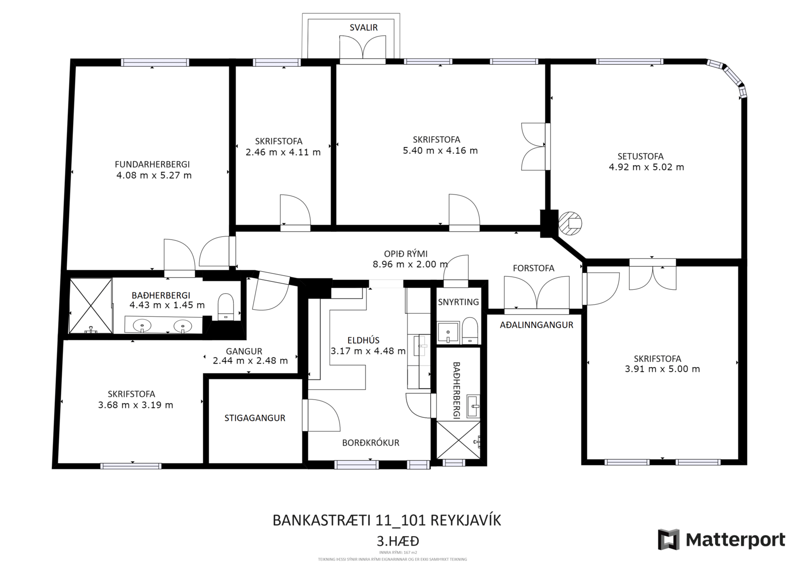 Auk þess eru þrjú önnur skrifstofurými. Öll mjög rúmgóð með parket á gólfi.