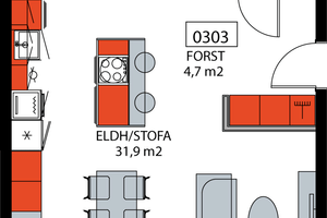 Stofu: Parket á góllfi, útgengt út á svalir í suðvestur.
