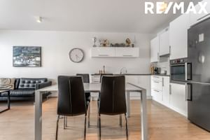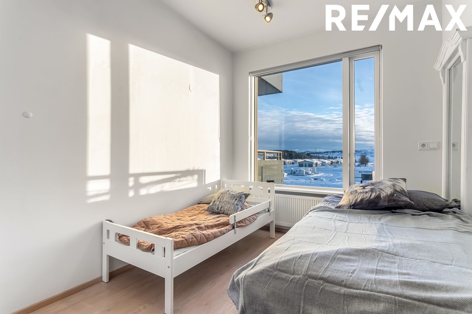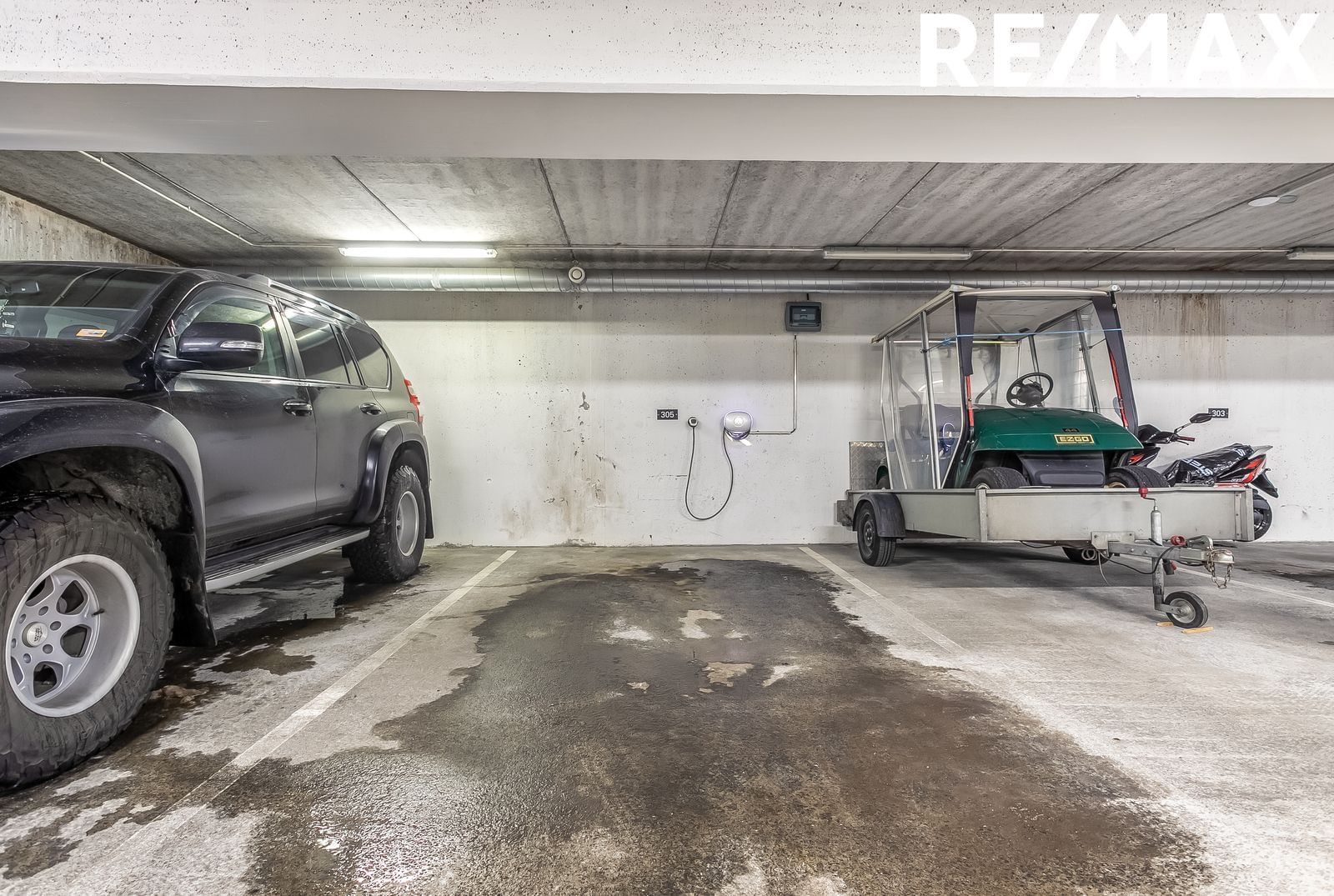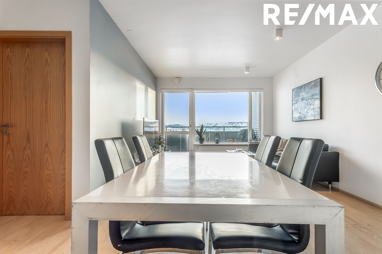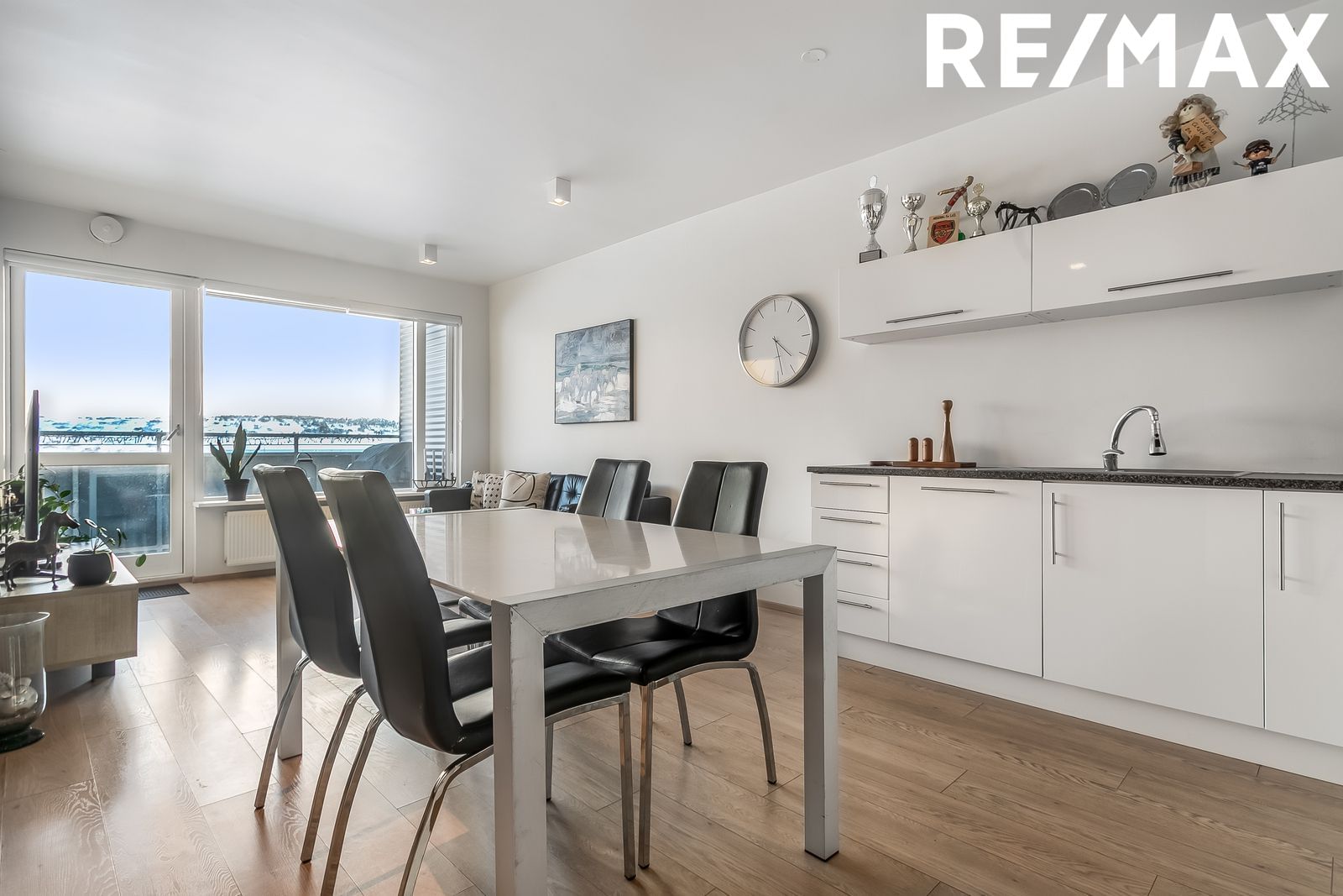 Nánari lýsing Forstofa: Rúmgóð með flísum á gólfi og fataskáp. Eldhús: Með hvítri innréttingu og góðu skápa- og vinnuplássi og innbyggðri uppþvottavél. Opið er úr eldhúsi í borðstofu/stofu. Harðparket á gólfi Borðstofa/Stofa: Samliggjandi opið rými við eldhús. Þaðan er gengið út á stórar suðursvalir. Harðparket á gólfi. Hjónaherbergi: Mjög rúmgott með góðu skápa plássi. Harðparket á gólfi. Herbergi II: Rúmgott með fataskáp og harðparketi á gólfi. Baðherbergi: Er með hvítri innréttingu með góðu skápaplássi. Baðkar með sturtuaðstöðu og upphengdu salerni. Flísar á gólfi og veggjum. Þvottahús: Með vaski og borðplötu. Sérgeymsla: Er í kjallara í sameign og er hún 6,5 fm. Bílageymsla: Stæði er í bílageymslu og búið er að setja hleðslustöð. Hjóla- og vagnaeymsla er í sameign.