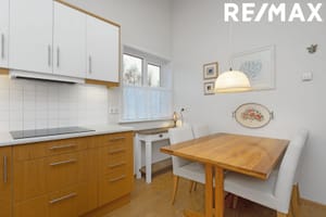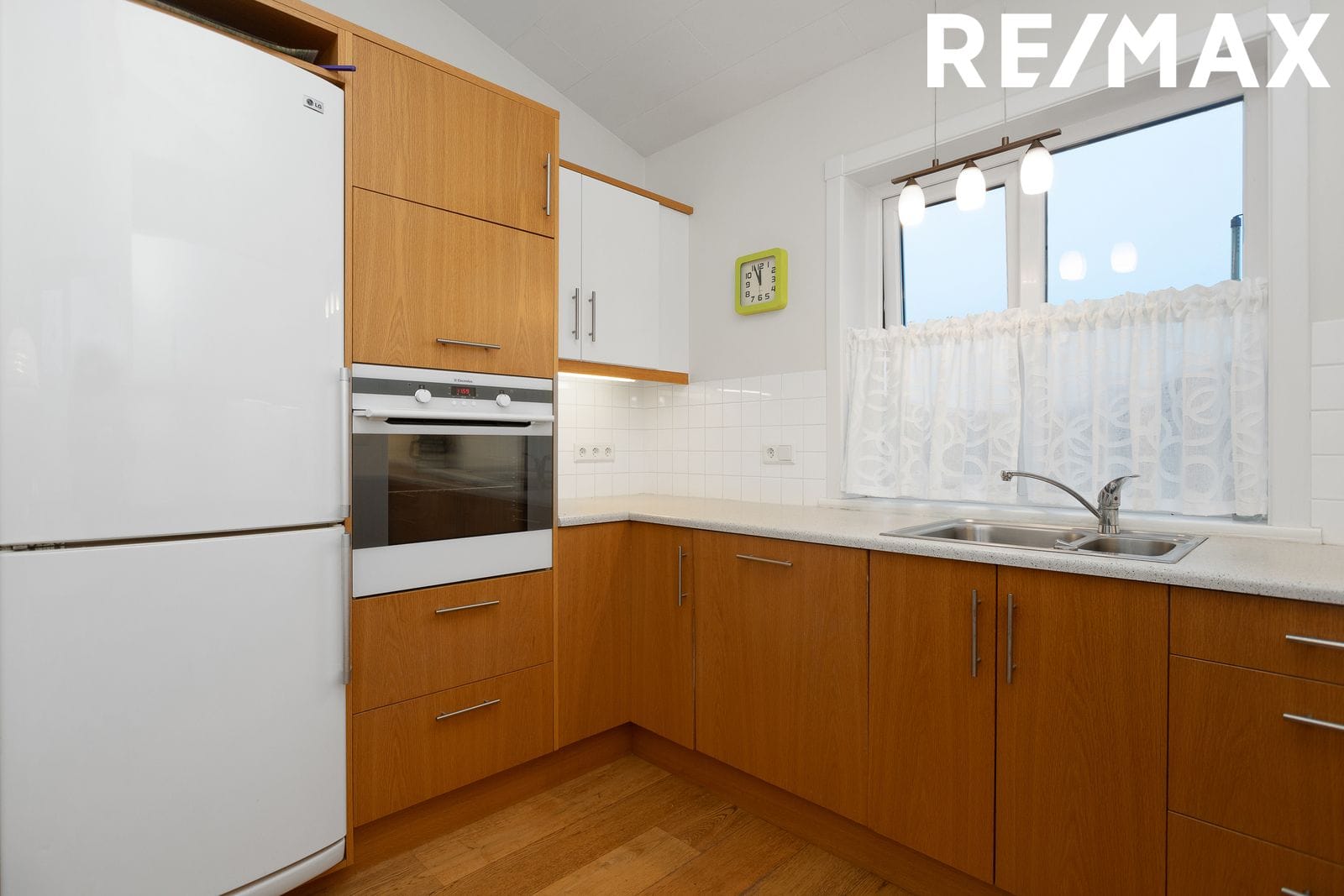 Eldhús: Eldhúsið er rúmgott með góðri innréttingu í U með efri og neðri skápum og góðum glugga fyrir miðju. Innrétting er í bland eik og hvít með bakaraofni í vinnuhæð og innbyggðri uppþvottavél. Í eldhúsinu er borðkrókur við glugga. Plankaparket er á gólfi.