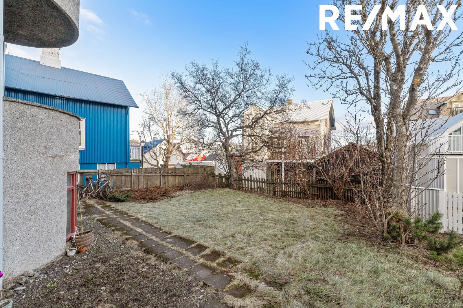 Garður er gróinn og afgirtur aftan við hús til austurs. Framan við hús er nýhellulögð stétt eftir að öll inntök inn í hús voru endurnýjuð sumar 2025.