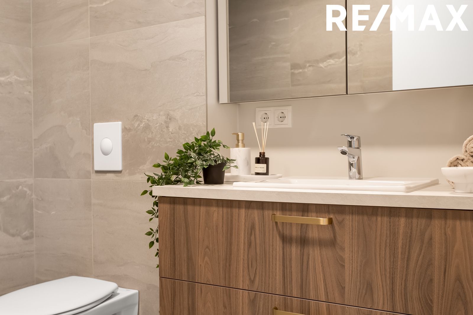 Baðherbergi: Baðinnrétting kemur frá Axis. Hreinlætistæki og handklæðaofn eru frá Byko. Salernið er upphengt og innbyggt. Hitastýrð blöndunartæki verða við sturtu. Gólf eru flísalögð og veggir að hluta upp í loft