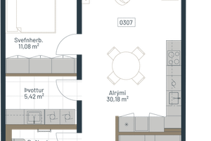 Íbúð 307: Rúmgóð og björt tveggja herbergja,