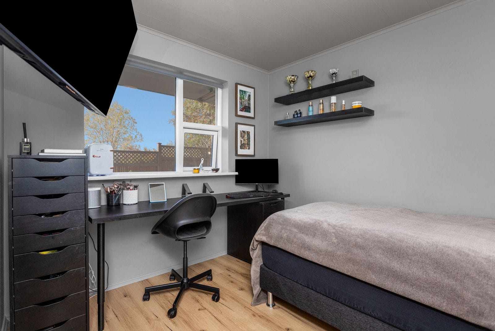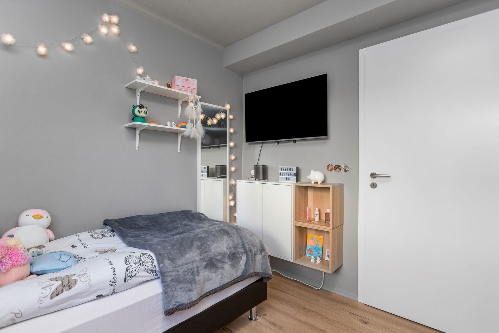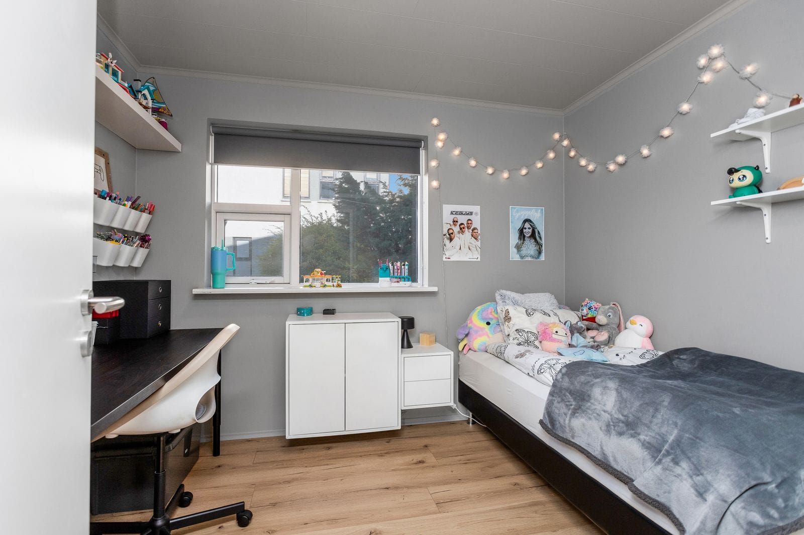 Barnaherbergi nr.3: Rúmgott barnaherbergi með harðparketi á gólfi.