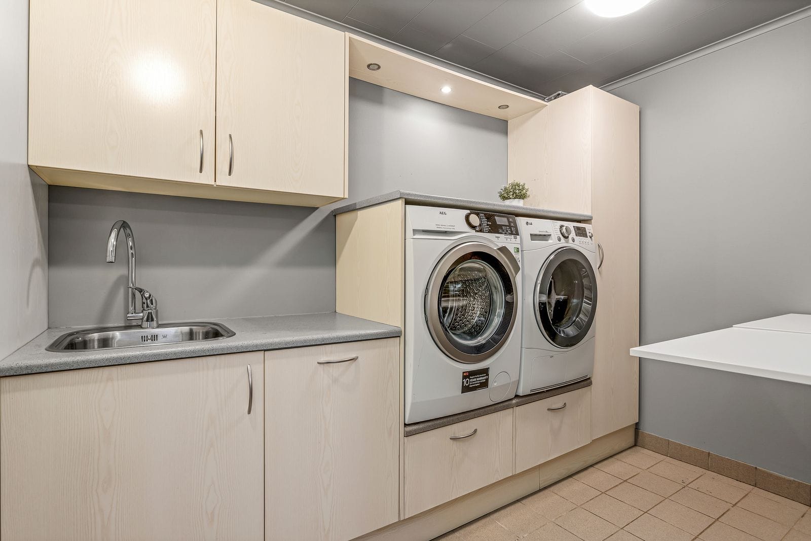 Þvottaherbergi: Innaf fataherberginu er rúmgott þvottaherbergi með miklu skápaplássi og gert ráð fyrir þvottavél og þurrkara í vinnuhæð.