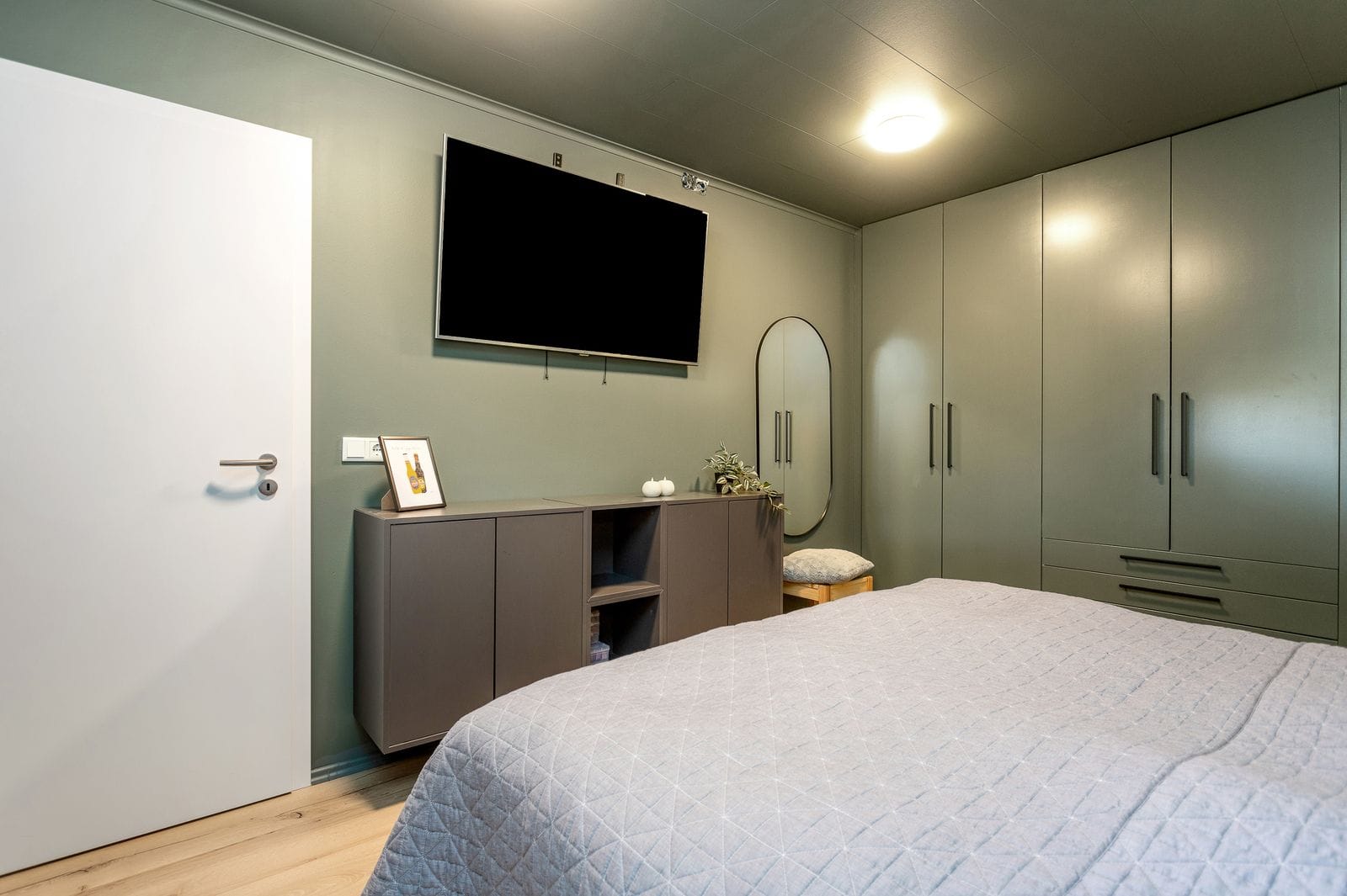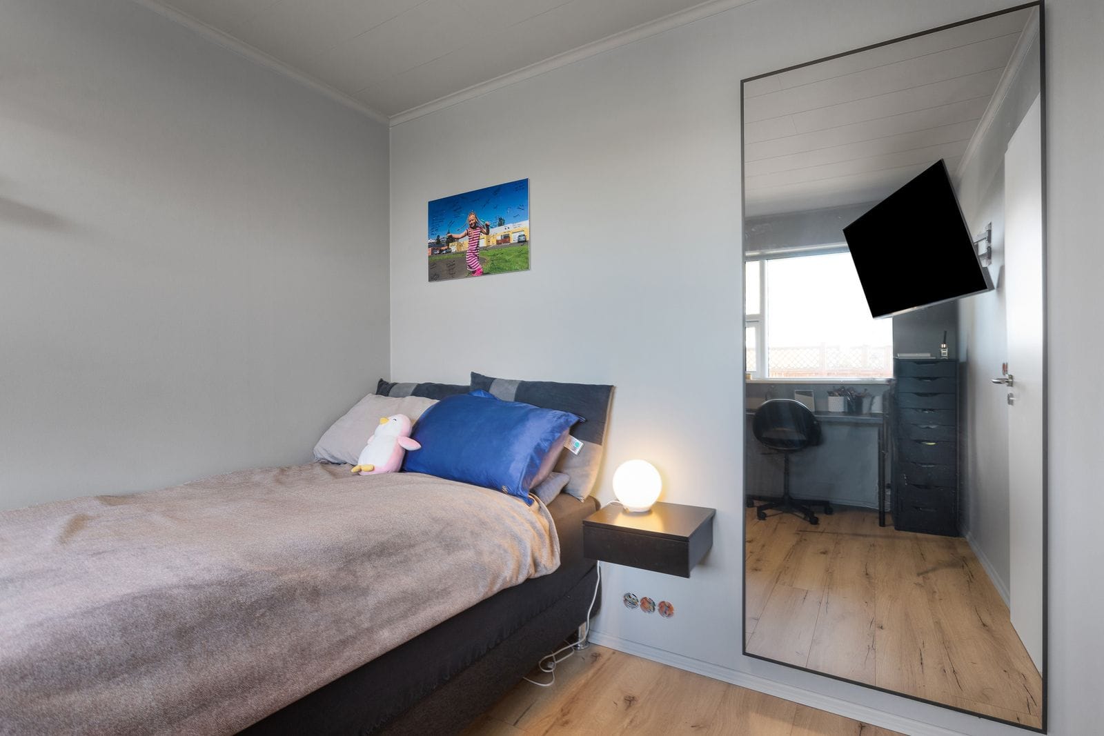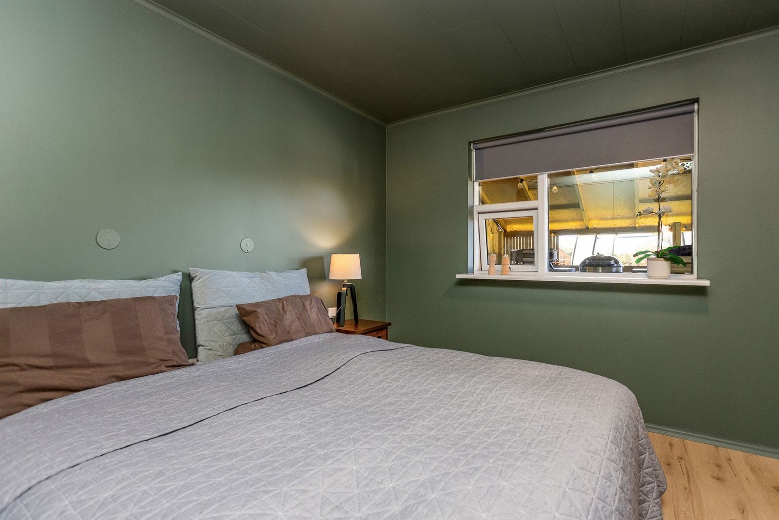 Hjónaherbergi: Hjónaherbergið er rúmgott með vönduðu harðparketi á gólfi og góðum sexföldum fataskáp sem nær upp í loft.