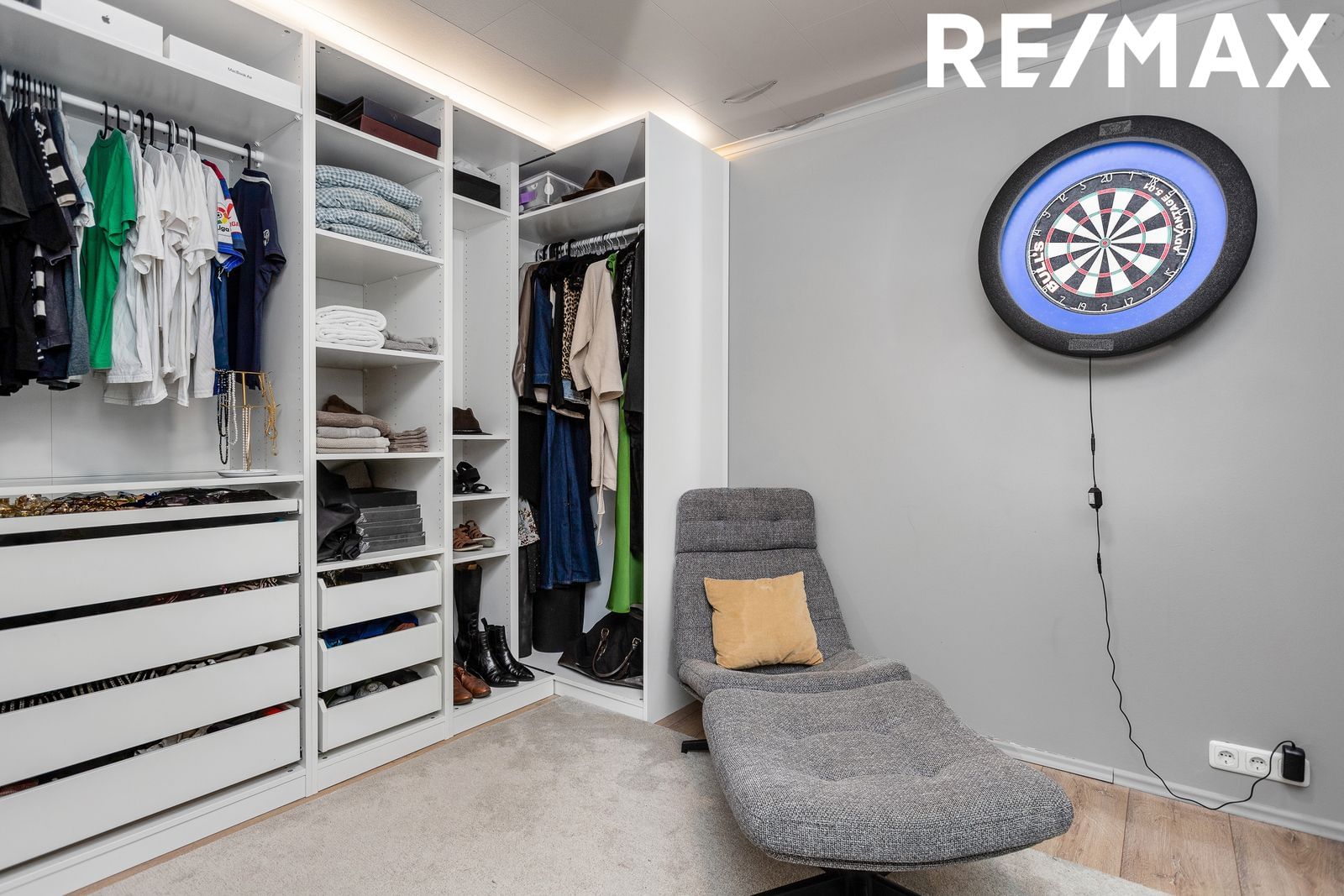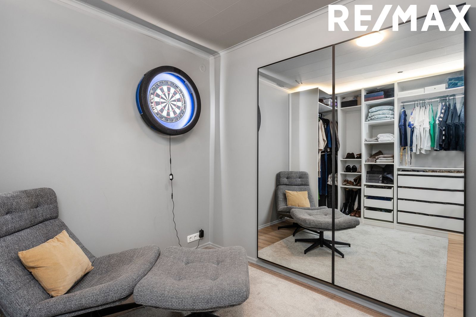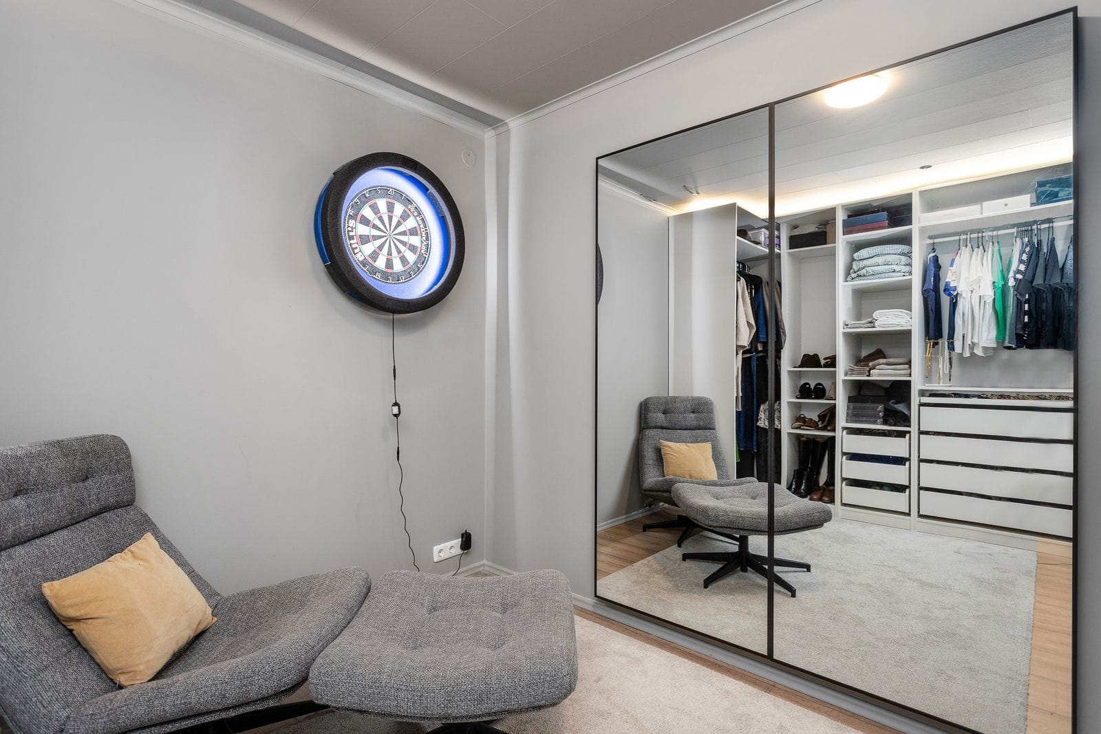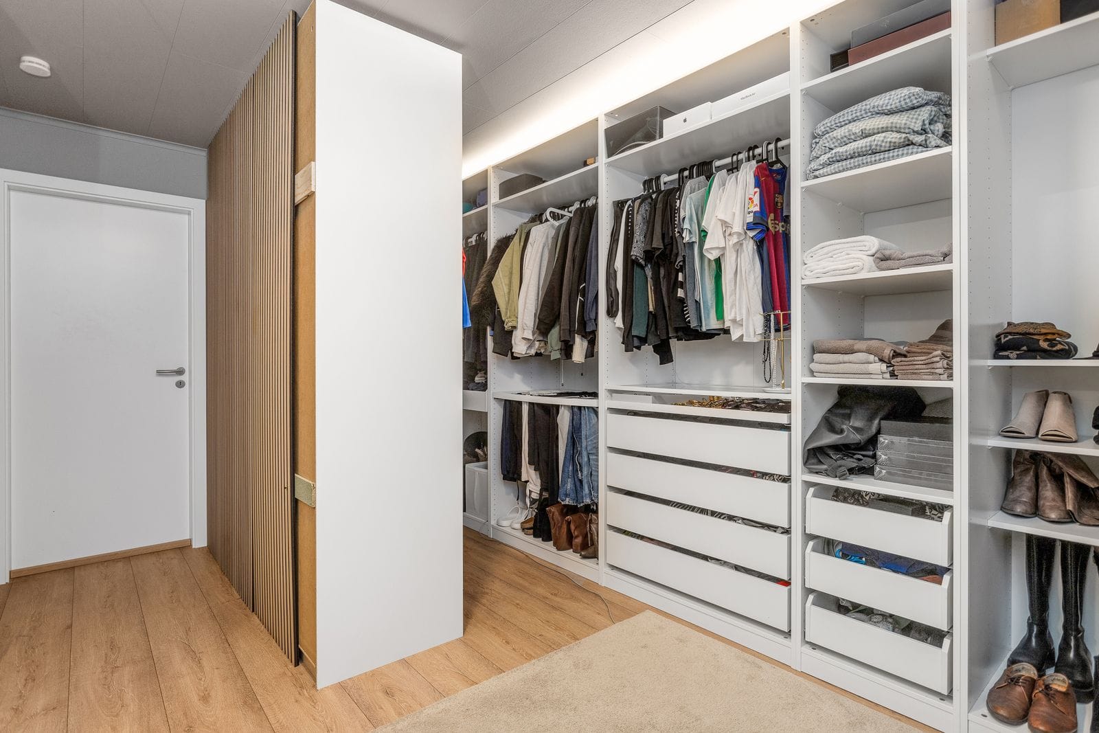 Fataherbergi: Inn af miðju holinu á hæðinni er stórt og rúmgott fataherbergi sem nýtist öllum herbergjum eignarinnar.
