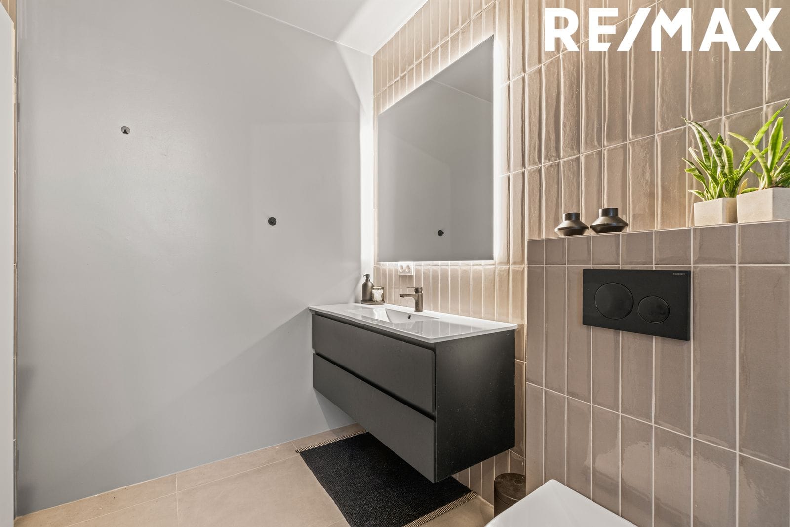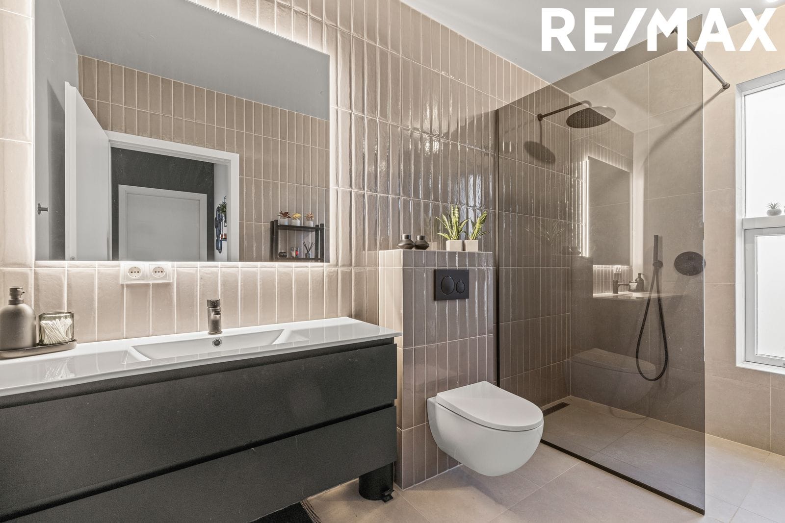 Baðherbergi er einstaklega notalegt og var klárað 2024 og er með walk-in sturtu, upphengdu salerni, vandaðri innréttingu undir handlaug, spegli með innbyggðri lýsingu, glugga til loftunar og flísum á gólfi og upp á vegg.