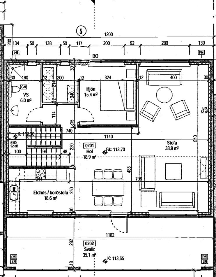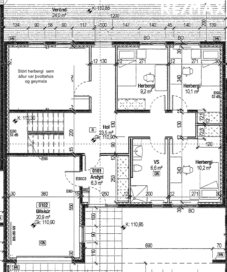 Eikar harðparket er á allri neðri hæðinni utan votrýma og bílskúrs.