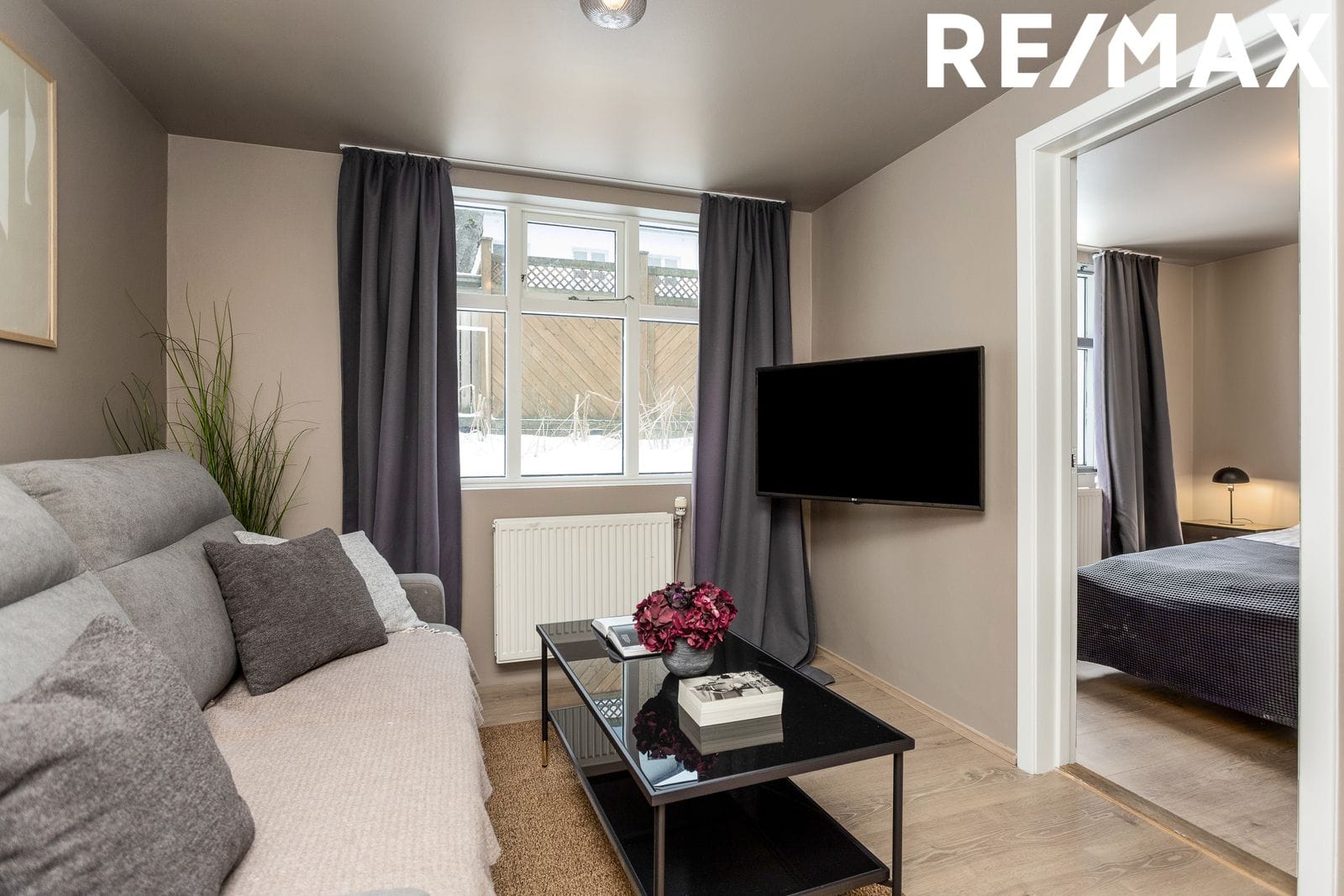 Notaleg tveggja herbergja íbúð með sérinngangi og beinu aðgengi að útisvæði.