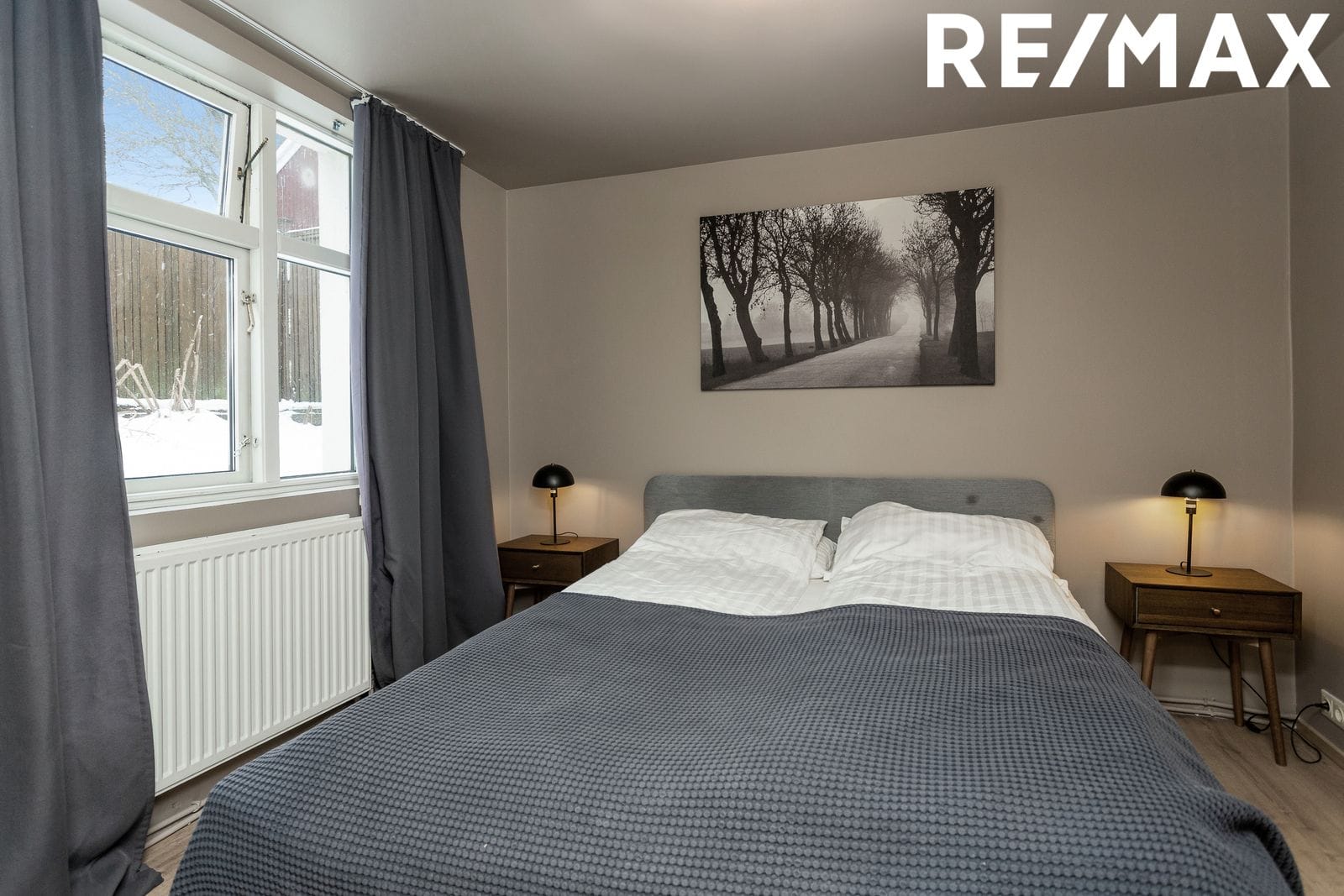 * Útleigueining. Húsið skiptist í tvær 2ja herbergja íbúðir - 46,7 m² hvor.