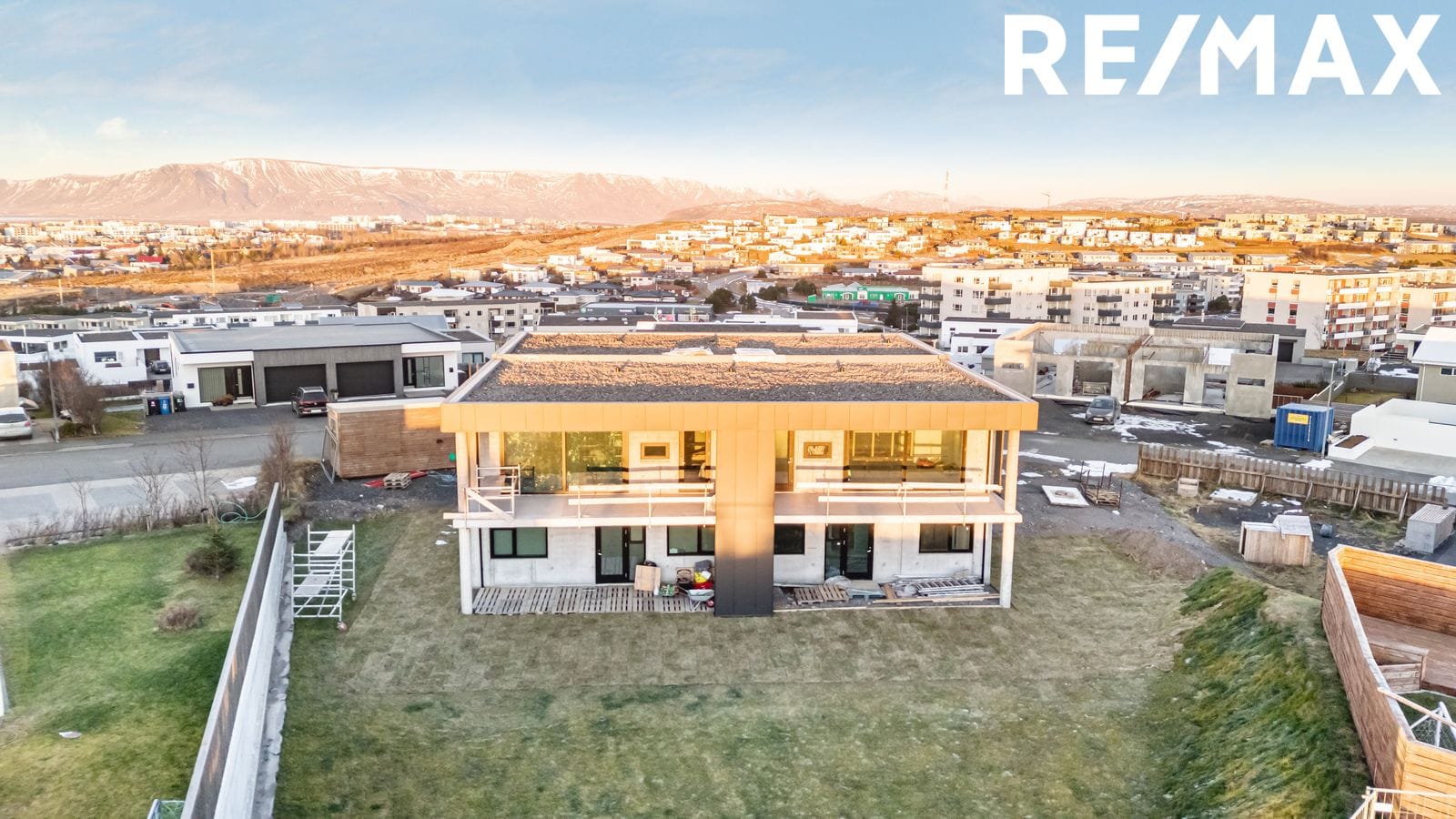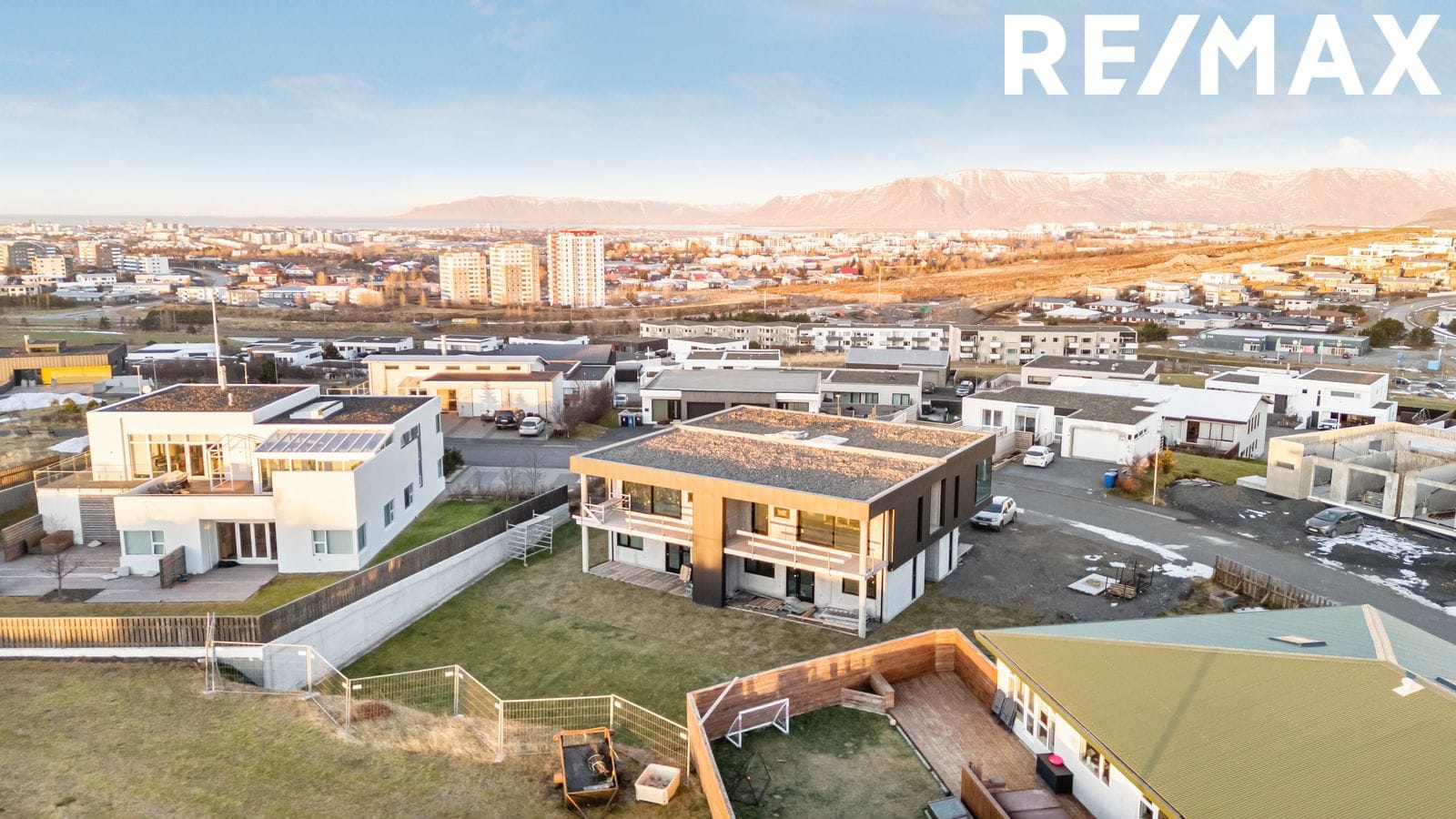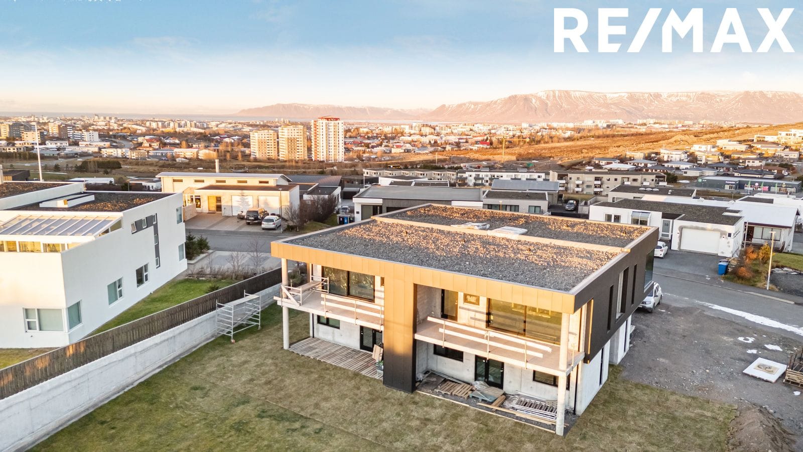 RE/MAX og Stefán Jarl kynna til sölu: Nýtt og vandað parhús á útsýnisstað við Akrakór 5A, 203 Kópavogi. Um er að ræða staðsteypt 220,6 fm glæsilegt parhús með sjónsteypuveggjum að hluta til að innan og að utan. Efri hæð er klædd og einangruð að utan að hluta með vandaðri 2 mm álklæðningu í Deep dark grey lit.