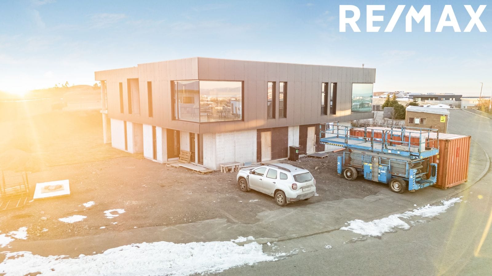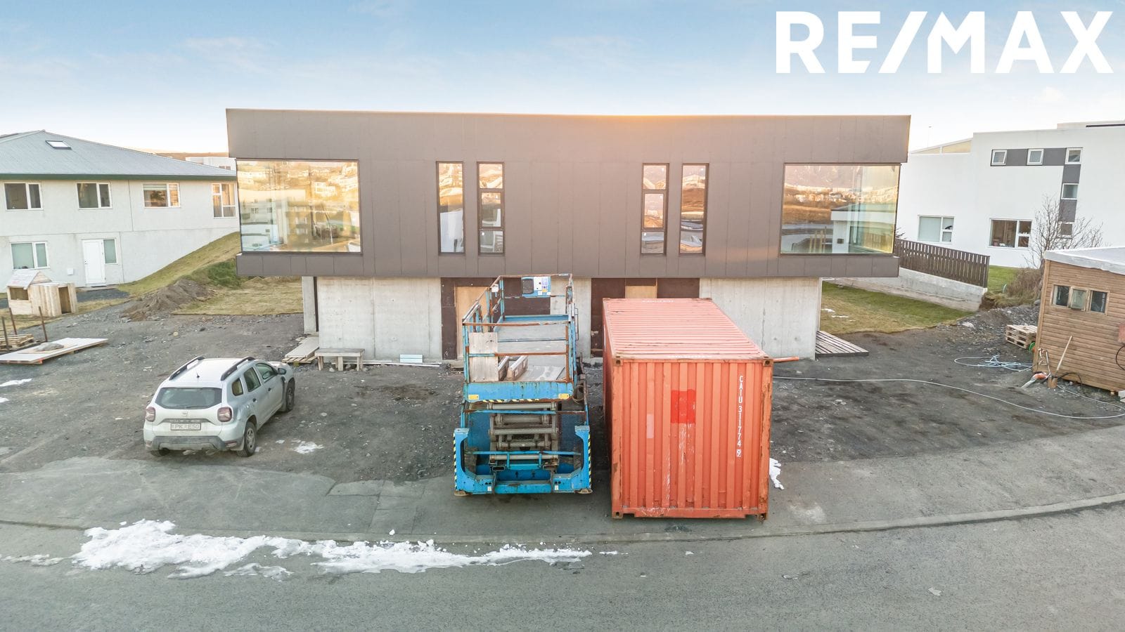 Bílskúr skilast slípaður og ómálaður með fallegri svartri bílskúrshurð með rafmagns hurðaopnara, gert er ráð fyrri ofni inn í bílskúr.