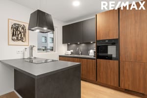 í eldhúsinu eru vandaðar innréttingar frá þýska framleiðandanum Nobilia með tækjum frá AEG, innbyggðri uppþvottavél og innbyggðum ísskáp. Ljós eru undir efri skápum og er einstaklega gott geymslupláss innan innréttingar.