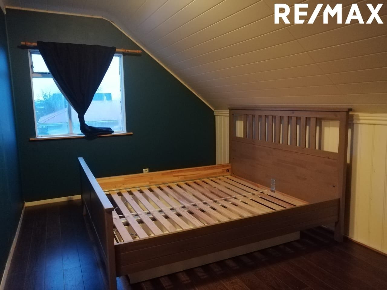Baðherbergi - Var herbergi en gert að baðherbergi 2016 (allar lagnir nýjar), að hluta undir súð. Flísalagt gólf og veggir með viðar- og steinlíki. Rúmgott nuddbaðkar og sérsturtuklefi með sturtuhaus í lofti (óklárað). Handlaug með innréttingu og gluggi.